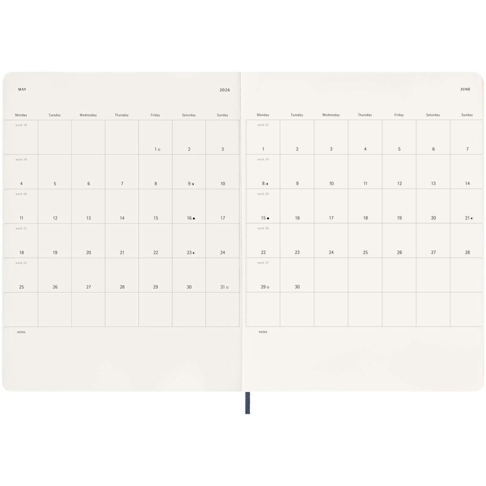Elevate your brand visibility with the customizable Moleskine Soft Cover 12-Month Weekly XL Planner for 2026. This spacious XL format displays the entire week at a glance on one side, paired with a ruled page opposite for tasks, notes, and ideas. Monthly and yearly overviews, plus dedicated sections for travel planning and goal setting, keep professionals organized throughout the year.