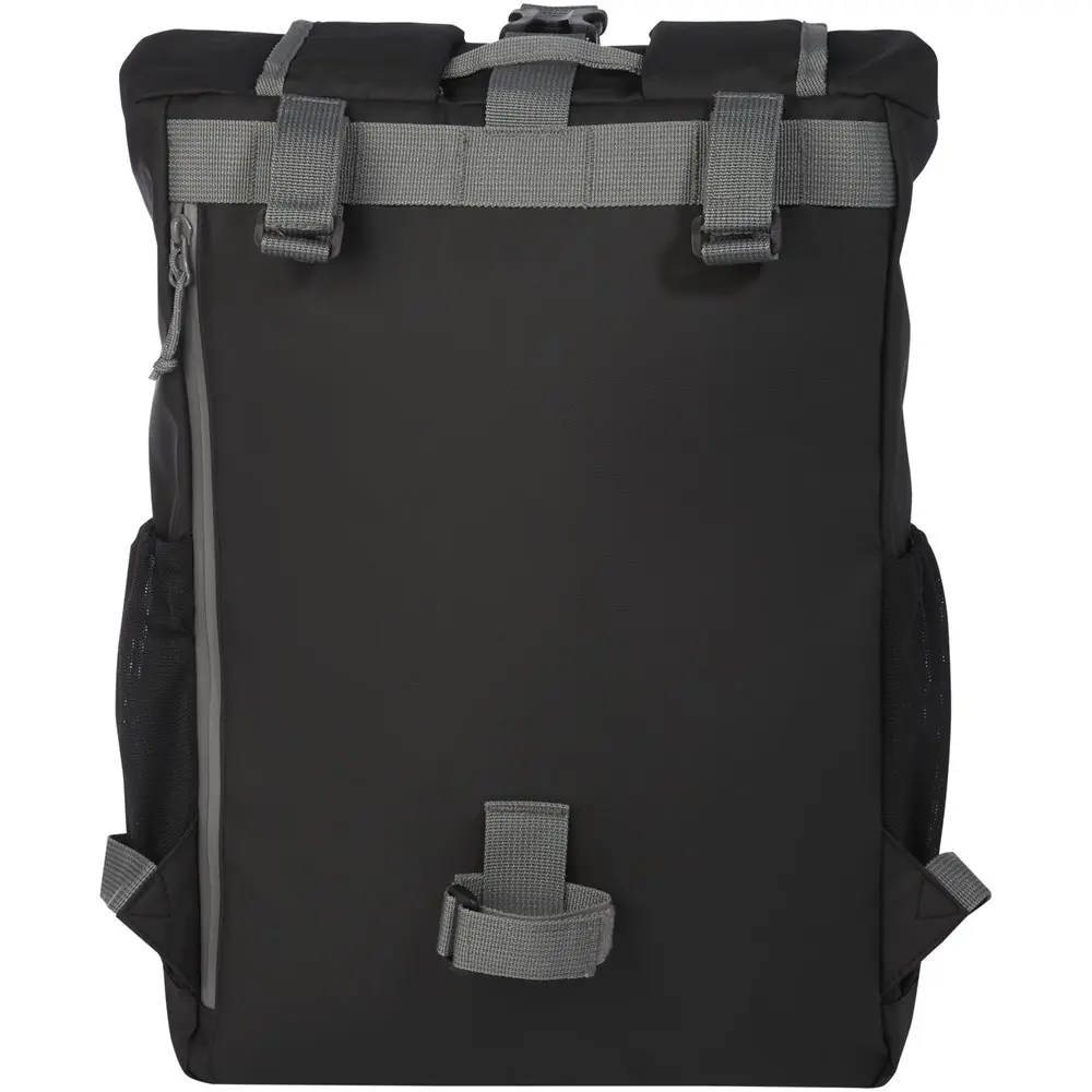 Elevate your brand's eco-friendly image with our 15" GRS recycled water-resistant roll-top bike bag, perfect for promotional giveaways at events or corporate gifting. Crafted from certified recycled polyester, including main fabric, lining, webbing, and zips, this sustainable 20L bag (30 x 57 x 14 cm) appeals to environmentally conscious recipients while showcasing your logo through customizable printing.