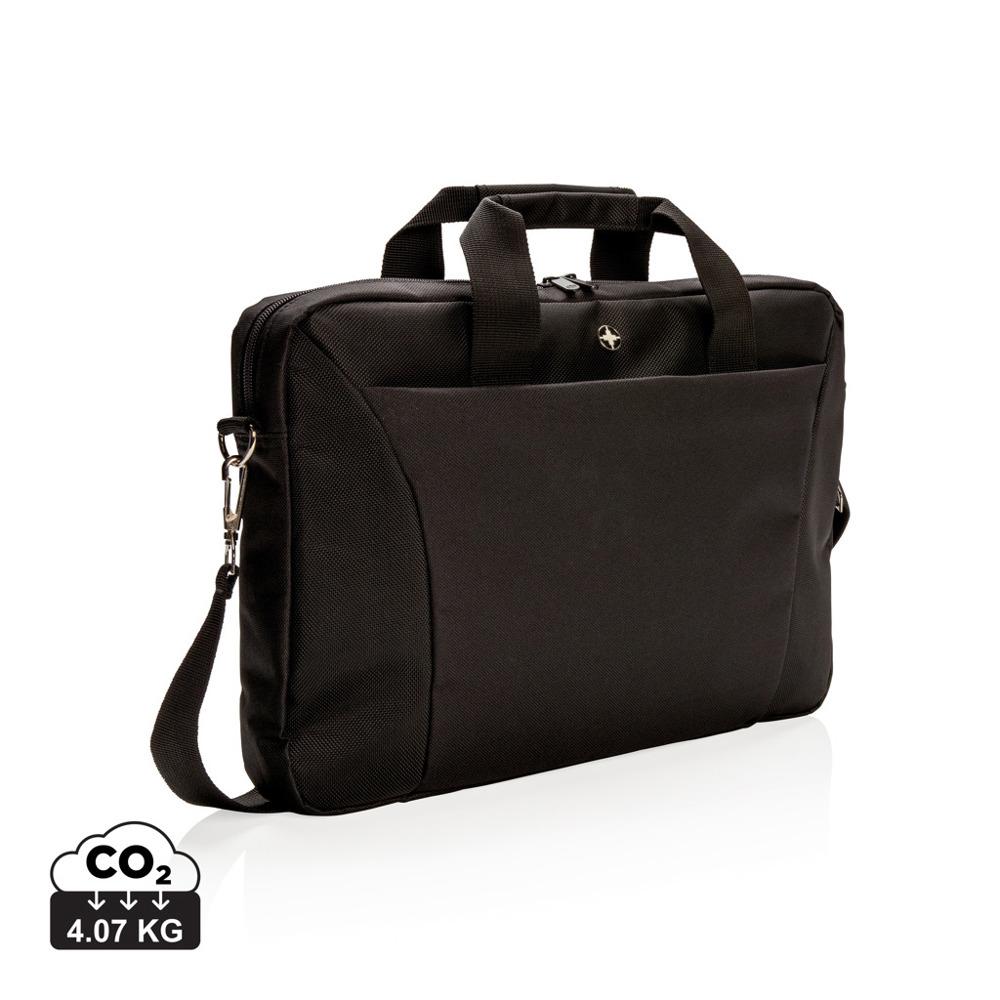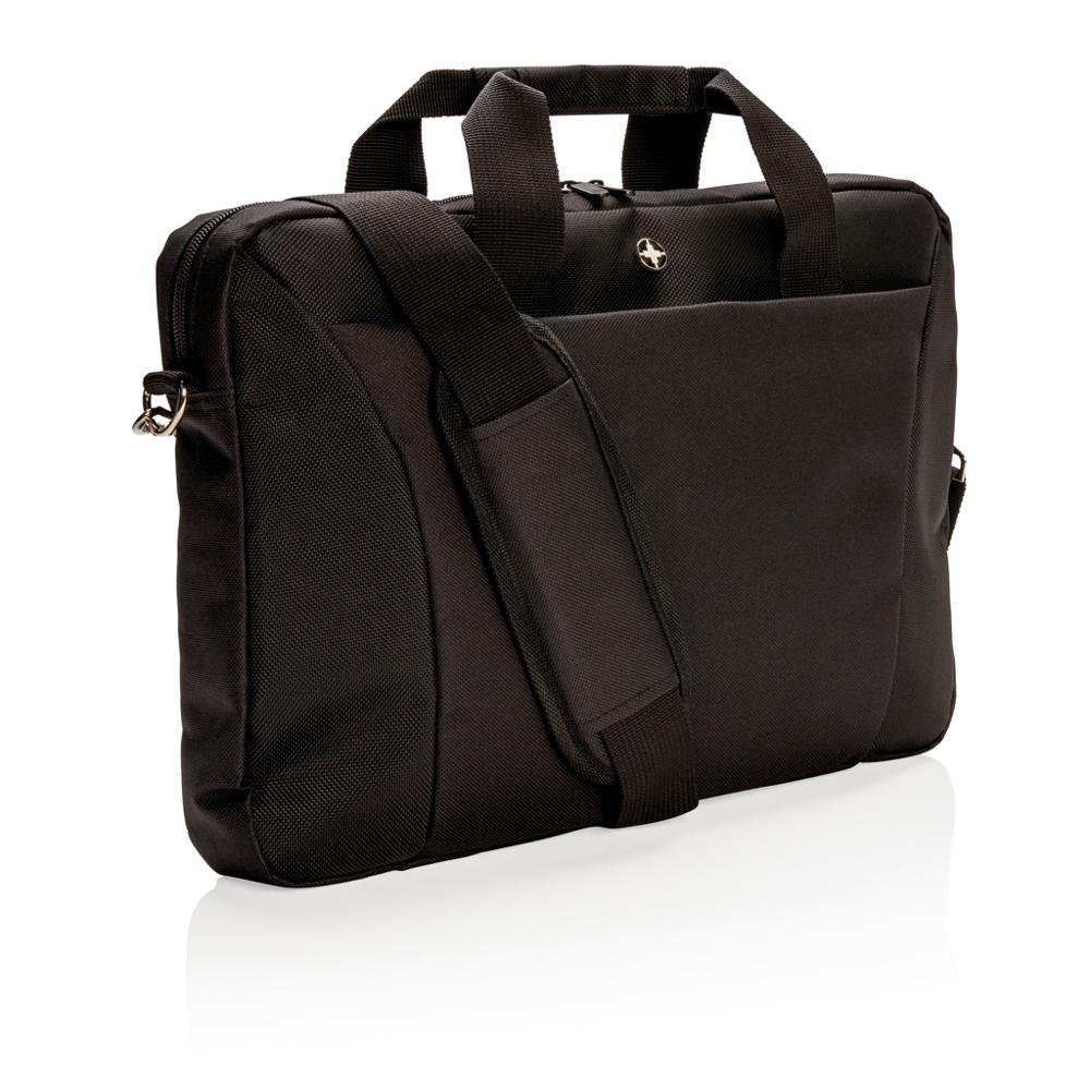 Elevate your brand visibility with this premium 15.4” laptop bag from Swiss Peak, perfect for personalization with your company logo. Crafted from durable 600D with 1680D polyester, it offers a slim profile that safeguards your 15.4-inch laptop in a padded pocket while providing dedicated space for tablets or iPads. Stay organized on the go with the front zippered organizer featuring pen sleeves and accessory pockets. Ideal for marketing professionals and event organizers, its rear luggage pass-through slides effortlessly over suitcase handles, and the adjustable, detachable shoulder strap ensures versatile carrying. PVC-free construction appeals to eco-conscious clients, making it a standout promotional giveaway that impresses recipients and promotes your brand at every event or business trip.
