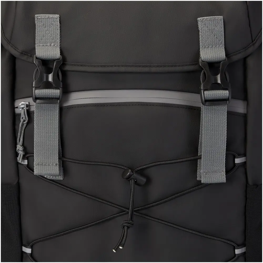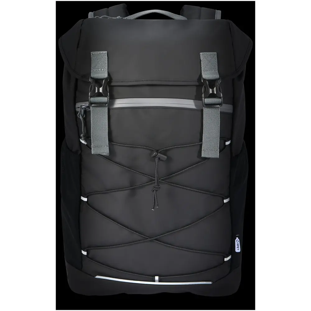 Elevate your brand with the 15.6" GRS recycled water-resistant laptop backpack, a sustainable choice crafted from 600D GRS certified recycled polyester, including lining, webbing, and zips—PVC-free and fully eco-compliant. This 23L (29.5 x 48 x 17.5 cm) backpack offers a dedicated 15.6” laptop compartment with drawstring and adjustable buckles for secure, spacious storage under the flap. Multiple pockets, including a zippered front with elastic drawstrings, keep essentials organized, while reflective piping enhances visibility for safety during events.