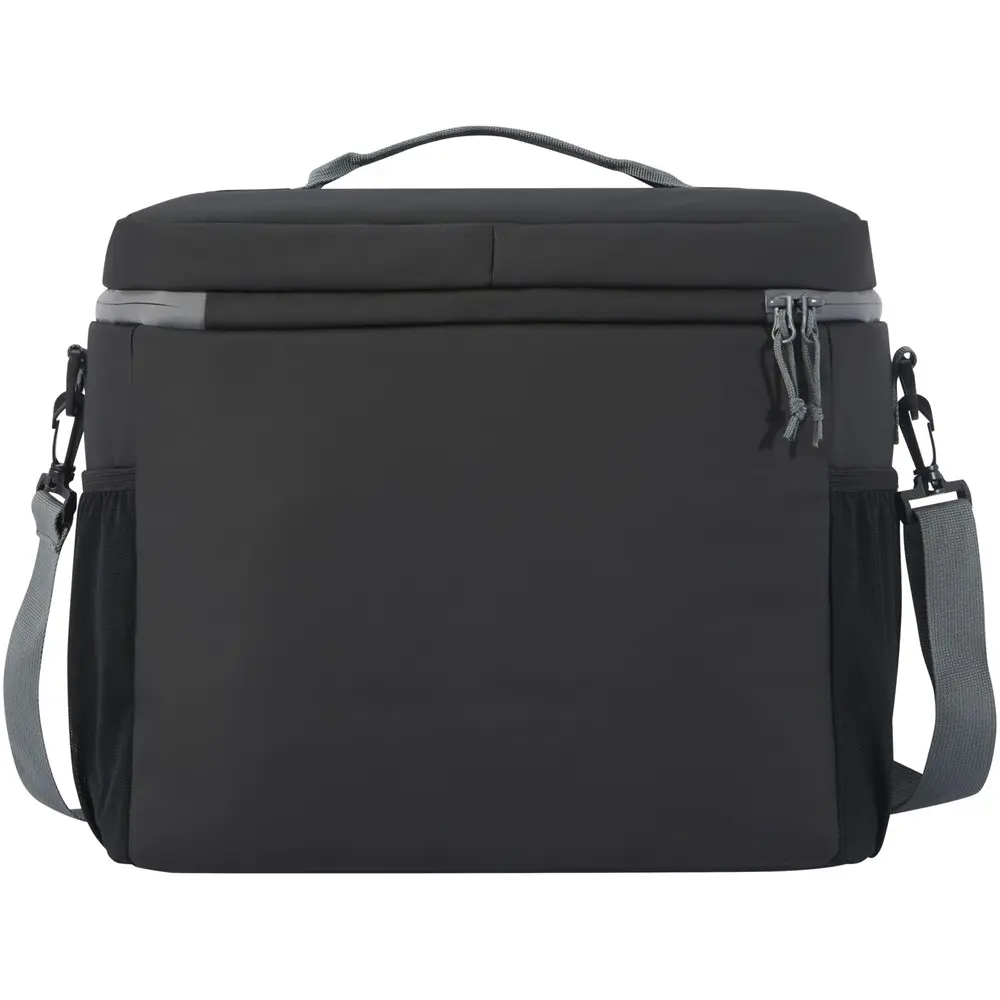 Discover our water-resistant 20-can cooler bag, crafted from GRS certified recycled materials for eco-conscious branding. Ideal for marketing teams and event organizers looking to impress clients with personalized promotional gifts featuring your company logo.