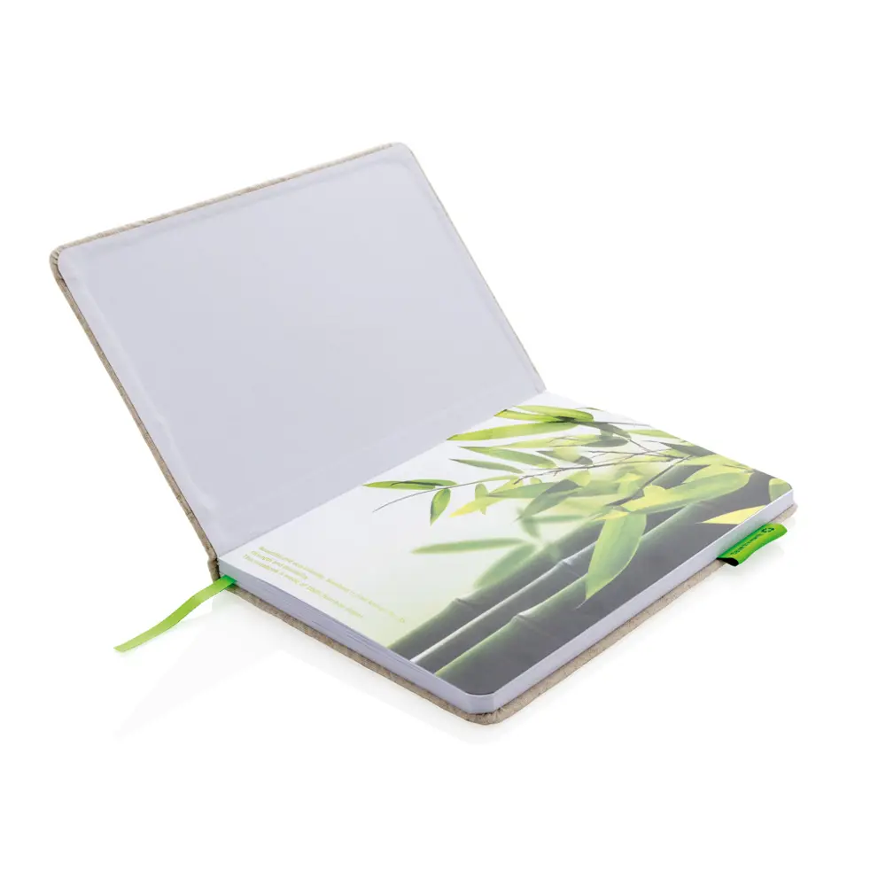 Elevate your promotional giveaways with this environmentally friendly jute notebook, designed for businesses seeking to make a positive impact. Crafted from natural jute covers and filled with bamboo paper, it combines style and sustainability, perfect for marketing teams and event organizers looking to distribute branded items that resonate with modern values.