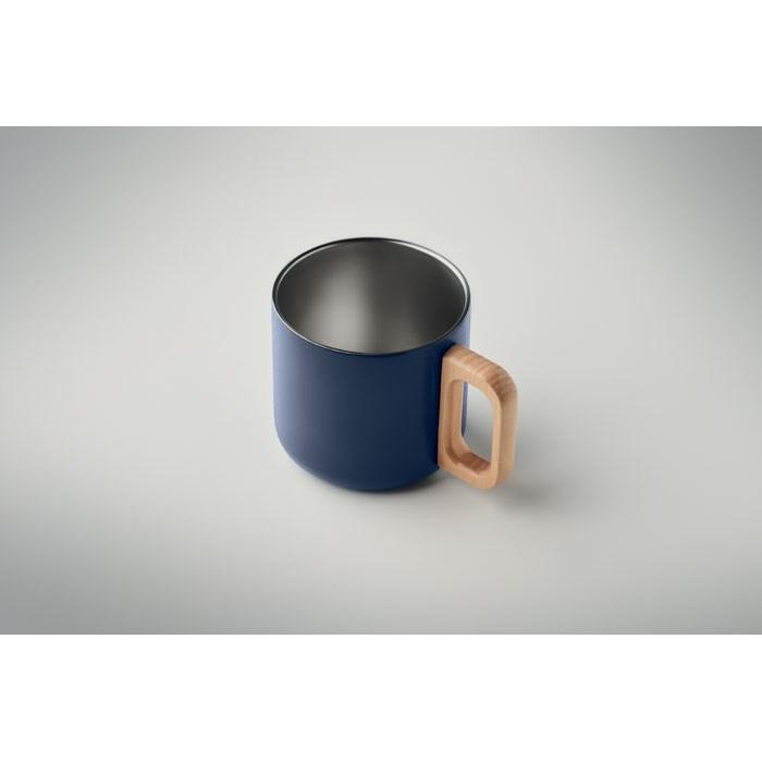 Elevate your brand with this sustainable double wall mug made from 90% recycled stainless steel and 10% premium stainless steel. Featuring a comfortable wooden handle, it offers superior insulation to keep beverages hot or cold for longer—perfect for coffee breaks, events, or daily use.