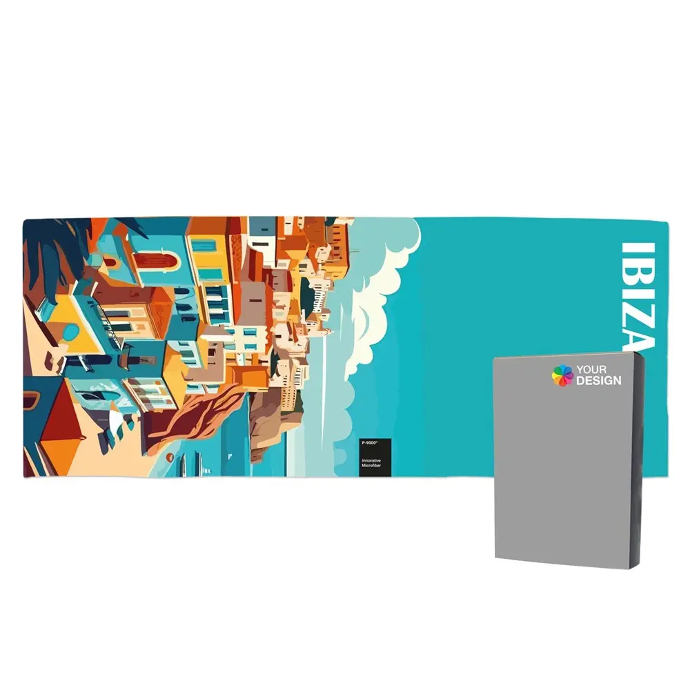 Maximize advertising impact with full-surface, photo-quality 4/0 digital printing in Germany—perfect for custom logos or designs that showcase your brand. The towel arrives in an eco-friendly, recyclable folding box with a customizable slipcase, turning packaging into another branding opportunity. Washable up to 40°C and tumble dryer safe, it's durable for repeated use.
