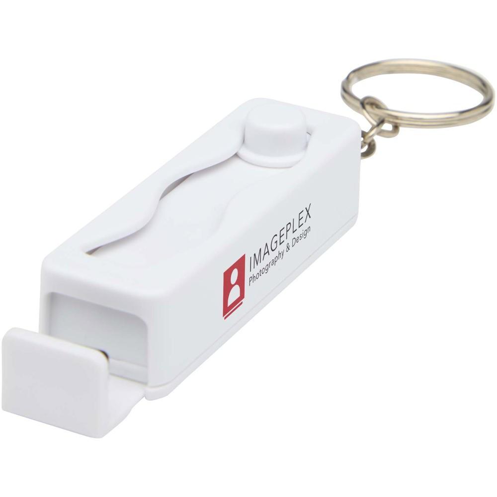 Elevate your brand with the Aggia phone stand with fidget toy, a versatile promotional giveaway crafted from recycled plastic for eco-conscious appeal. This compact accessory seamlessly integrates a sturdy phone stand, stress-relieving fidget toy, and convenient keychain, keeping recipients engaged, relaxed, and focused during meetings, events, or daily commutes.