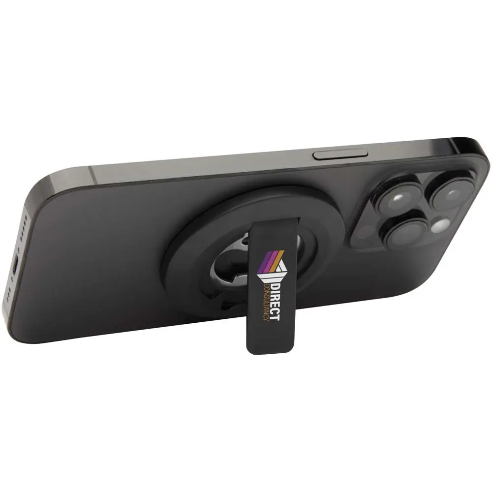 Elevate your promotional game with this innovative magnetic phone stand that also serves as a reliable bottle opener. Crafted from recycled ABS plastic, it offers a sustainable choice that aligns with eco-conscious branding. Designed to magnetically attach securely to iPhones 12 and newer models, it transforms into a stable stand for hands-free viewing during meetings, events, or commutes.