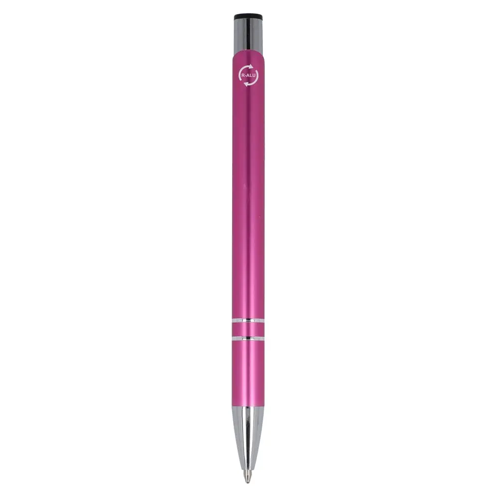 Elevate your promotional giveaways with this refined aluminum ballpoint pen, crafted from recycled materials for an eco-conscious touch. Featuring a sleek matte finish and distinctive two-ring accents along the barrel, it offers a sophisticated look that's perfect for professional settings. Equipped with smooth black ink for reliable performance, this pen ensures every stroke leaves a lasting impression.