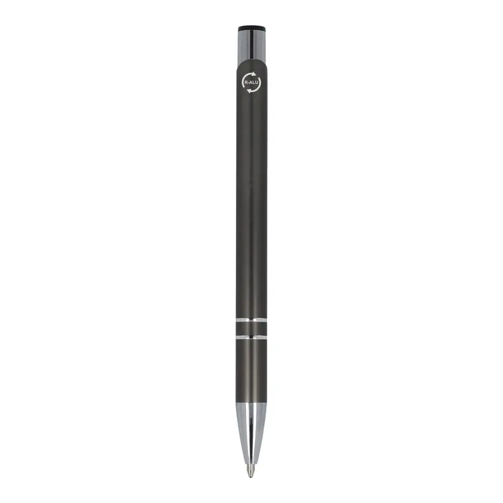 Discover the sustainable version of our classic ballpoint pen, crafted from recycled aluminum for an eco-conscious choice. This sleek design features two distinctive rings along the body, adding a refined detail that elevates its professional appeal. Ideal for businesses seeking high-quality promotional items.