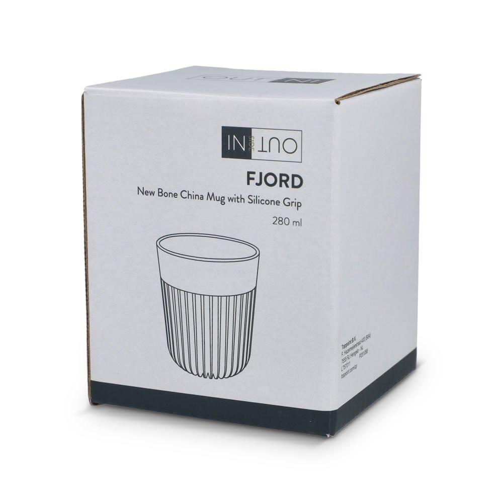 Elevate your brand with the Premium Mug Fjord 280ml, expertly crafted from premium New Bone China for a sophisticated touch. Featuring an exclusive ribbed silicone sleeve, it provides superior insulation to keep drinks hot longer while protecting hands from heat and ensuring a secure grip.