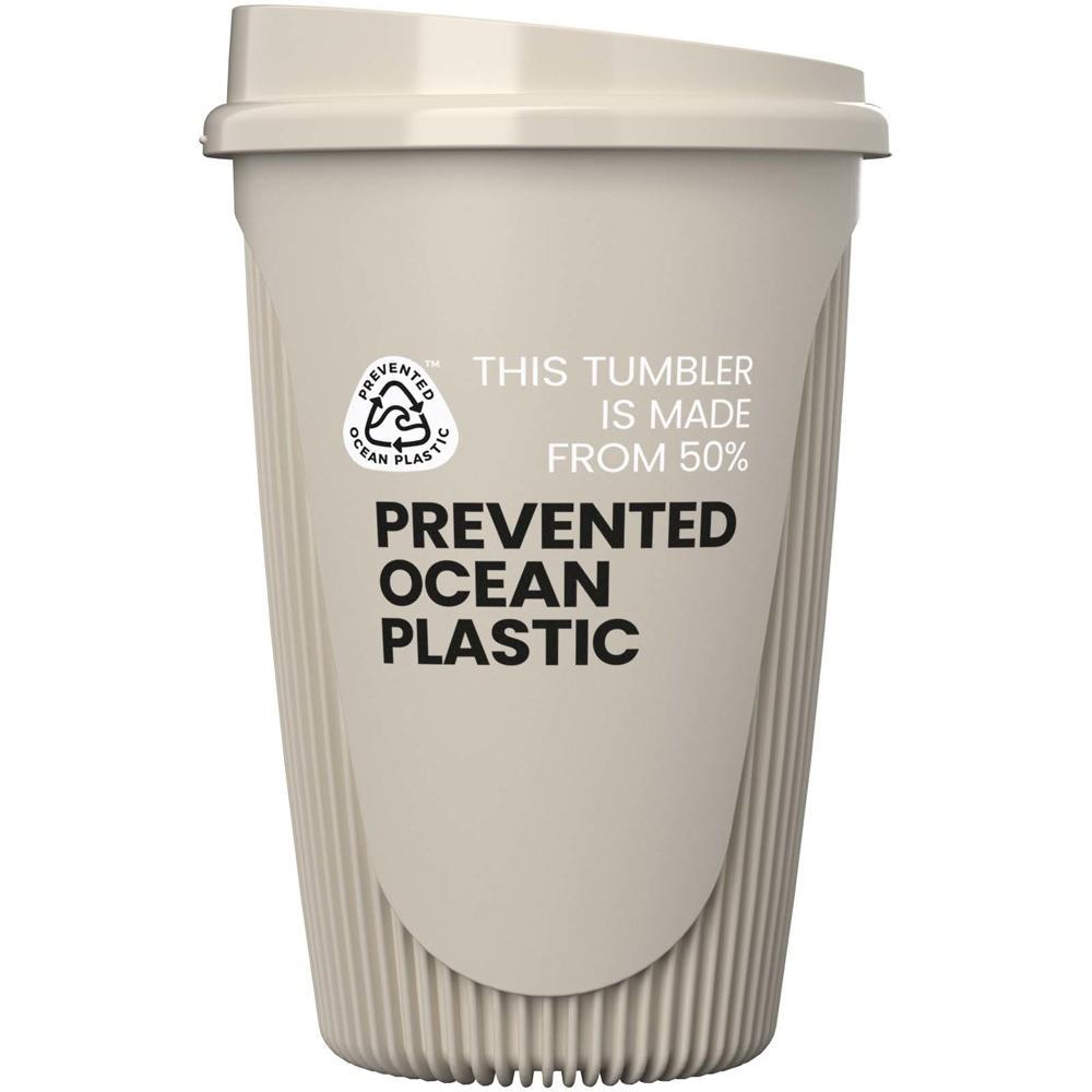 Elevate your promotional giveaways with the Alto POP 350 ml tumbler, crafted from 50% [Prevented Ocean Plastic](landing://22)—each one recycles and reuses 10 disposable plastic cups collected from Asia. This sophisticated single-walled vessel features insulating ridges for safe, comfortable handling of hot beverages, making it ideal for events and client gifts.