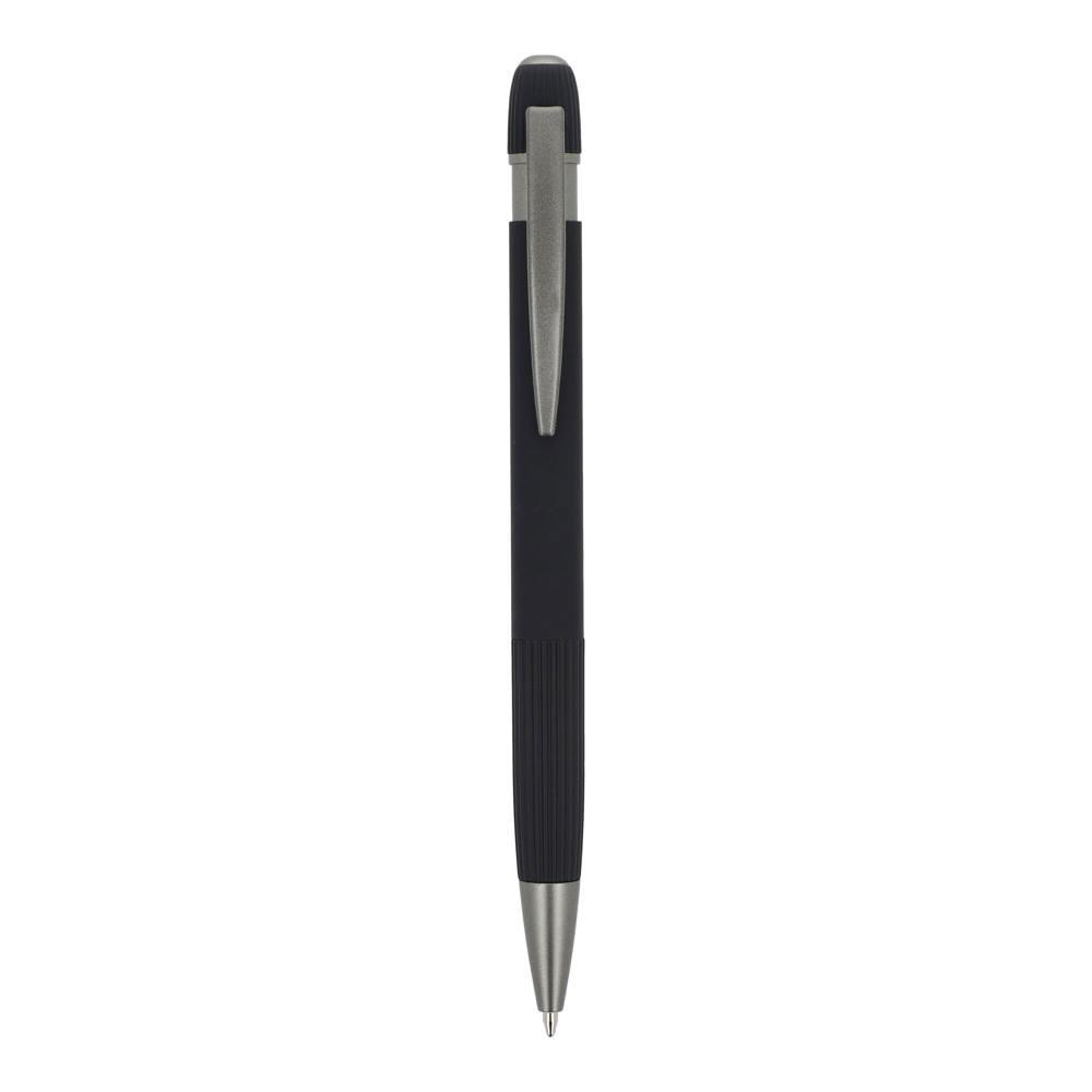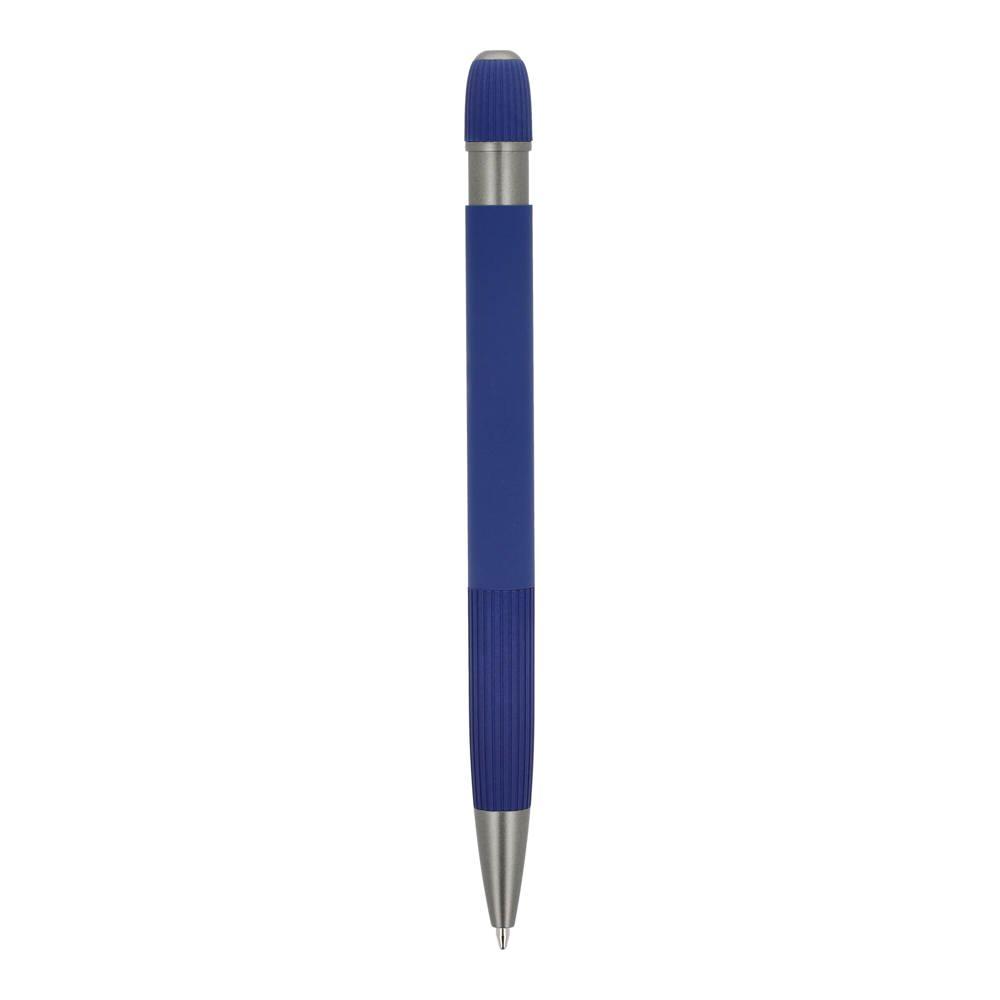 Elevate your brand with this premium aluminum ballpen, featuring a sleek metal clip and popular vertical stripes on the barrel and pusher for a modern, eye-catching look. The softtouch finish ensures comfortable grip and smooth writing with reliable blue ink.