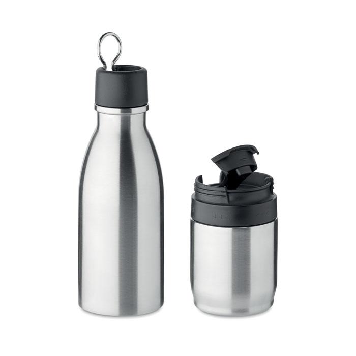 Elevate your brand visibility with the ATERA 2-in-1 Double Wall Bottle 500ml, a versatile stainless steel vacuum-insulated solution perfect for corporate giveaways and events. This innovative design features a 500ml bottle that detaches into a leak-free 310ml flip-lid tumbler, offering unmatched convenience for on-the-go hydration.