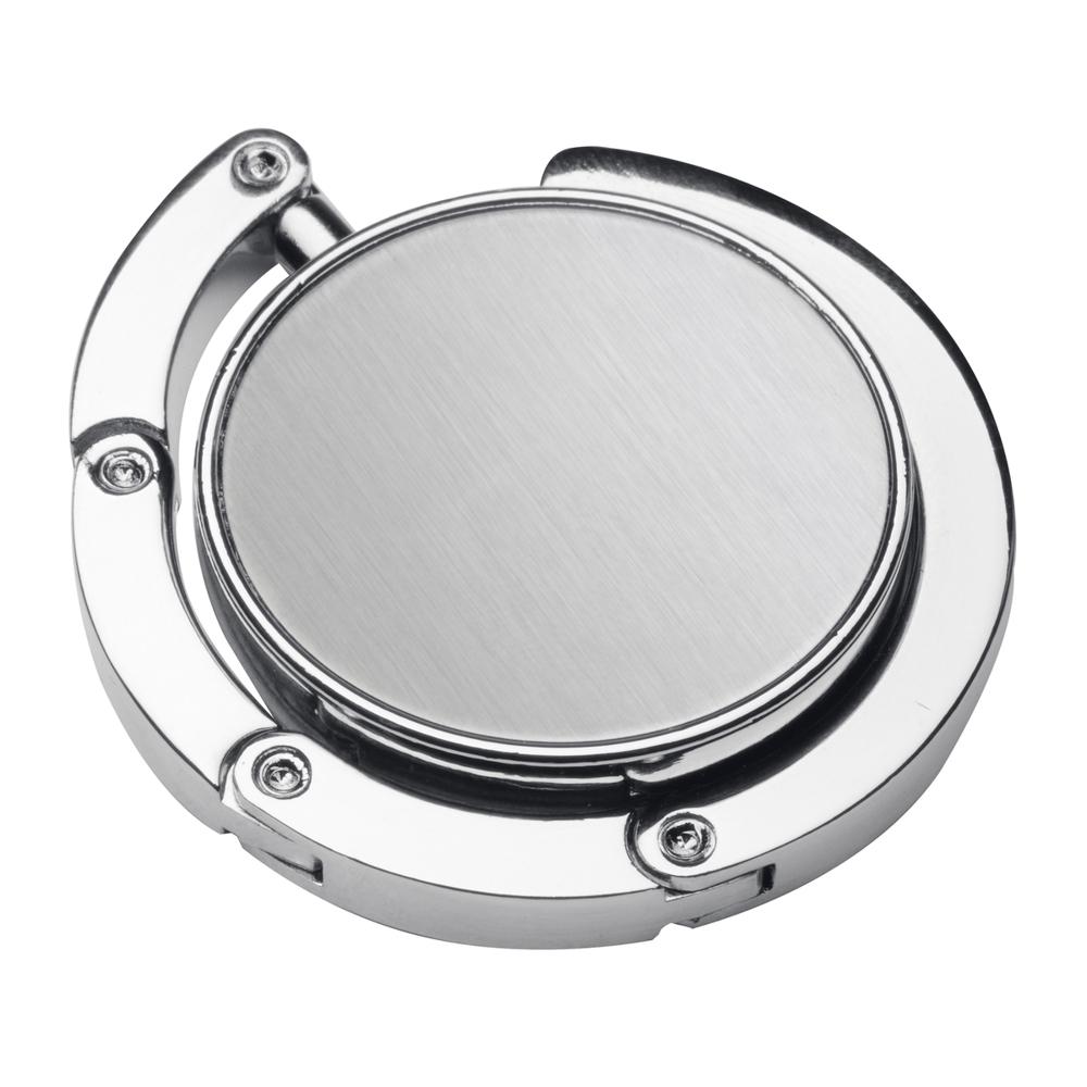 Elevate your brand visibility with this practical fold-out bag hanger, perfect for events, trade shows, and corporate giveaways. Simply hook it onto tables, chairs, or railings to keep bags off the floor and hands-free while on the move. The expansive engraving area ensures your logo stands out boldly and prominently, while full-surface doming on the rounded top delivers a brilliant, durable shine that catches eyes from afar.