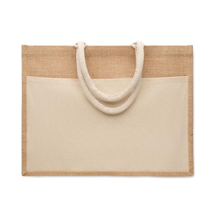 Jute shopping bag with front pocket