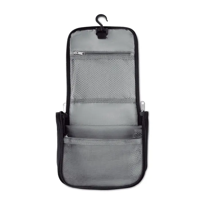 Elevate your brand with the BAGOMATIC - Cosmetic Hanging Bag, a premium promotional travel accessory crafted from durable PET polyester. Featuring multiple compartments and breathable mesh pockets, this hanging design keeps toiletries organized and accessible, making it perfect for business trips or events. Ideal for marketing teams and event organizers, customize it with your logo for a practical giveaway that boosts visibility and leaves a lasting impression on clients. Enhance your promotional strategy with this versatile, high-quality item that combines functionality and branding.