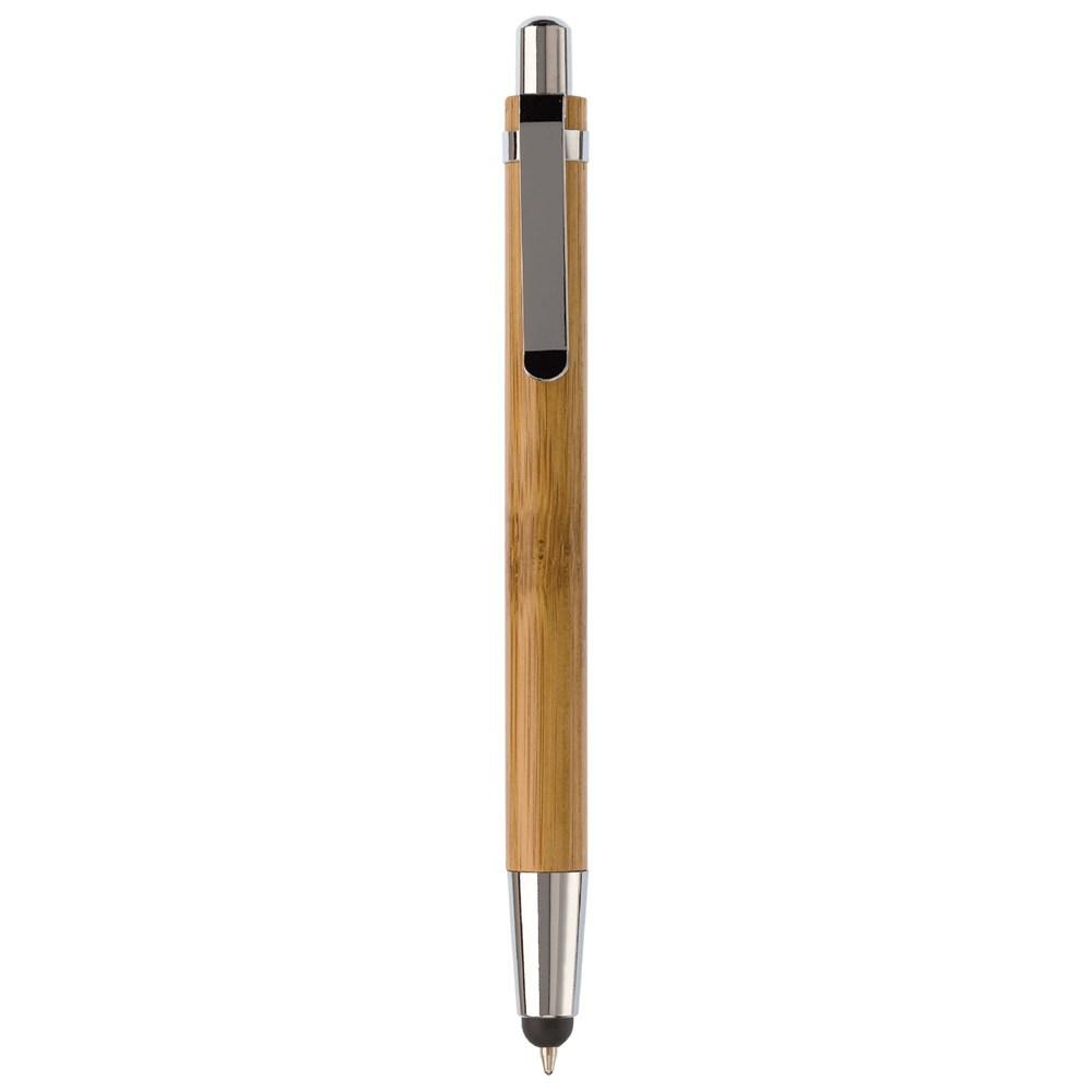 Elevate your brand with this sustainable bamboo ball pen, featuring a metallised pusher, tip, and metal clip for a premium feel. Equipped with a convenient stylus for touchscreen devices and a jumbo refill with black ink for extended writing performance (diameter: 12 mm).