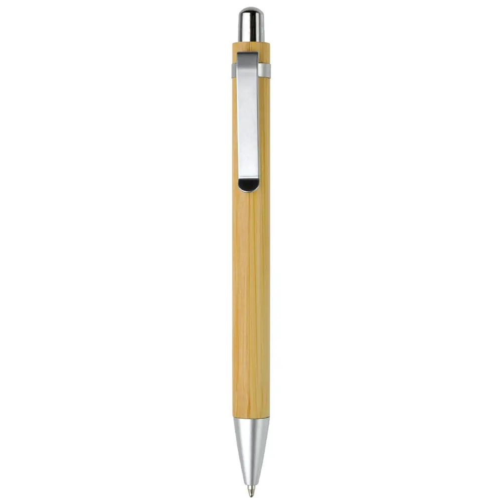 Discover our eco-friendly bamboo ball pen, crafted from renewable bamboo material for a natural touch. Featuring a sturdy metal clip, metallized pusher, and tip, this pen ensures reliable performance and a premium feel. Equipped with a jumbo refill for extended writing, it delivers smooth ink flow ideal for daily use.