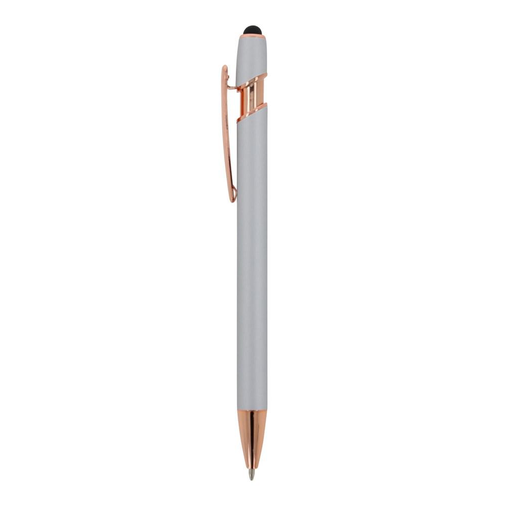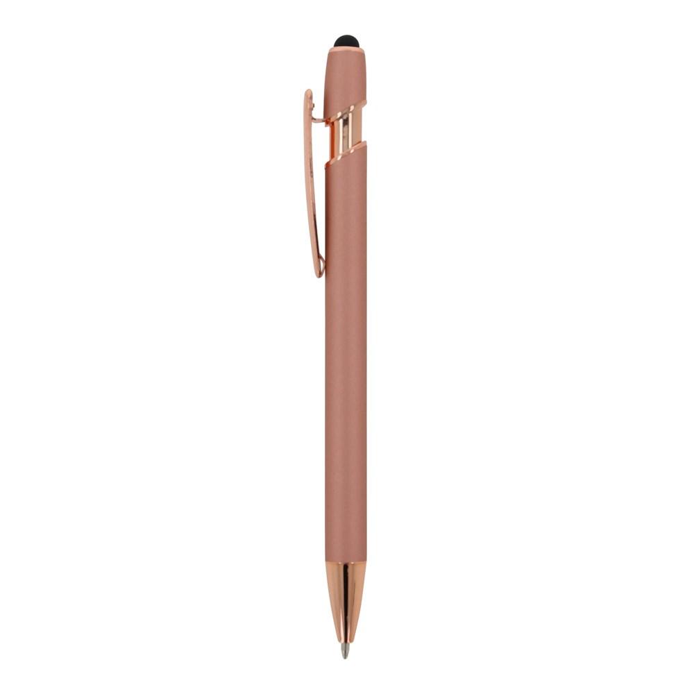 Elevate your brand with this premium aluminum ball pen, featuring an elegant soft-touch finish for a comfortable grip and professional feel. The integrated stylus makes it perfect for modern devices, while the solid metal clip ensures durability and style.