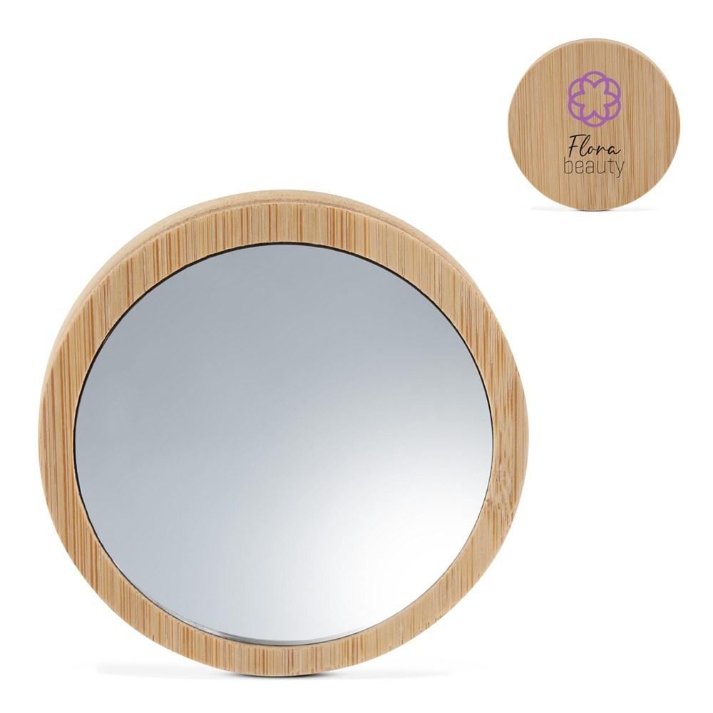 Elevate your promotional giveaways with this stylish, portable pocket mirror framed in sustainable bamboo. Measuring 70mm in diameter, it's the perfect size for everyday carry in purses, pockets, or event goodie bags.