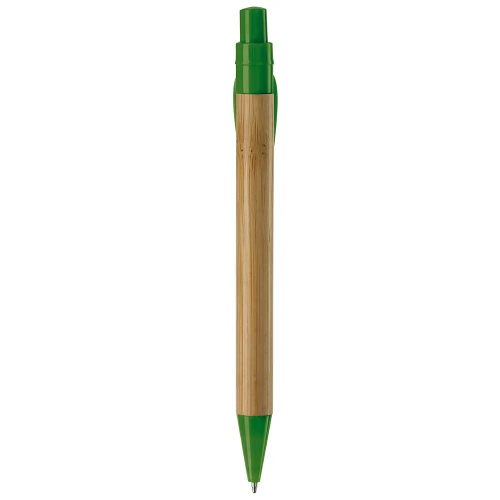 Discover this sustainable bamboo ball pen featuring a unique leaf-shaped clip, designed for effortless writing and eco-conscious branding. Equipped with a reliable X20 refill using black ink, it ensures smooth, consistent performance for everyday use.
