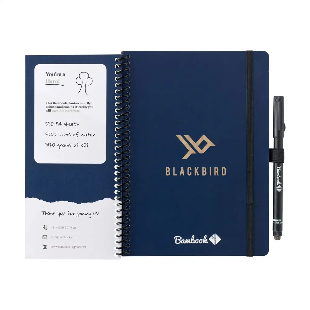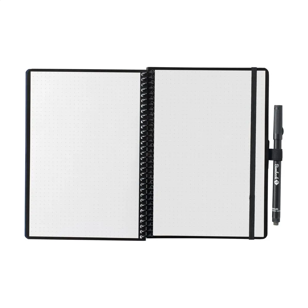Write on the 20 sheets of erasable dot grid paper using the included special marker and pen loop. Easily scan your notes via the Bambook app for digital storage, then wipe clean with a damp cloth for reuse. This innovative whiteboard-style surface reduces paper waste, making it an ideal eco-conscious choice for marketing campaigns and events.