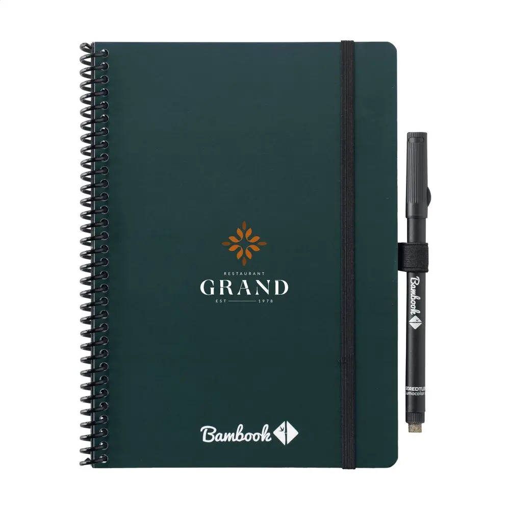 Inside, discover 20 sheets of erasable dot grid paper that lets you write with the included special marker, scan notes via the Bambook app, and wipe clean with a damp cloth for endless reuse—reducing paper waste and promoting eco-friendly practices. Perfect for marketing teams and event organizers, customize with your logo to create memorable, branded items that showcase your commitment to sustainability while keeping recipients organized on the go.
