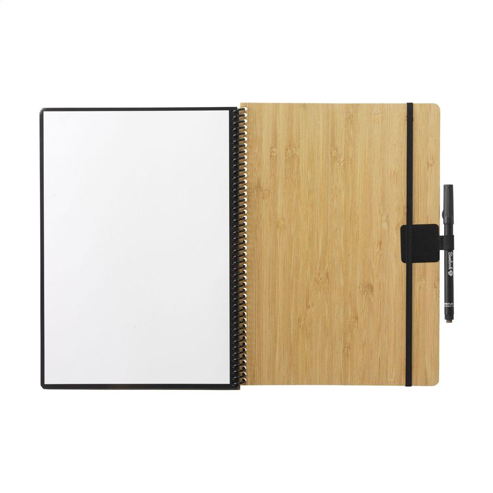 Elevate your brand with the bambook classic hardcover erasable notebook in A4 format, the perfect customizable promotional gift for marketing campaigns and events. Crafted with a sturdy bamboo cover and 20 sheets (40 pages) of erasable, lined whiteboard paper, this notebook offers endless reusability—write with the included special marker and eraser pen, scan notes via the intuitive Bambook app, then wipe clean with a damp cloth for immediate reuse.