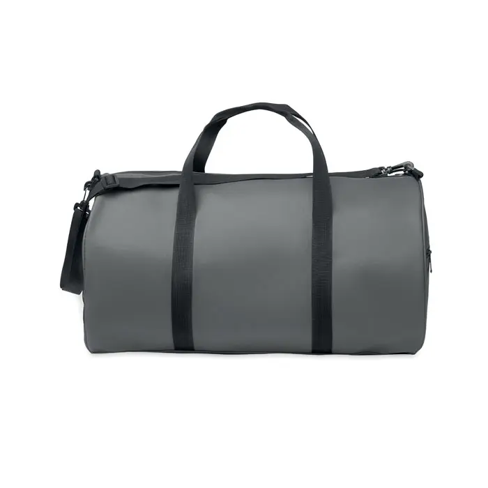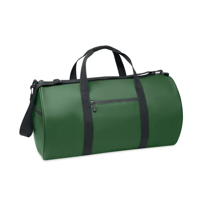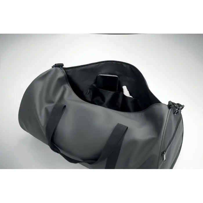 Elevate your brand with the BANGKOK Duffle Bag, crafted from durable 600D RPET polyester with PU coating for long-lasting use. This sustainable, recycled option features a front zippered pocket for quick access, an interior lined with 210D RPET polyester, one side zippered compartment for organized storage, a mesh side compartment for ventilated items, and an internal zippered pocket for valuables.