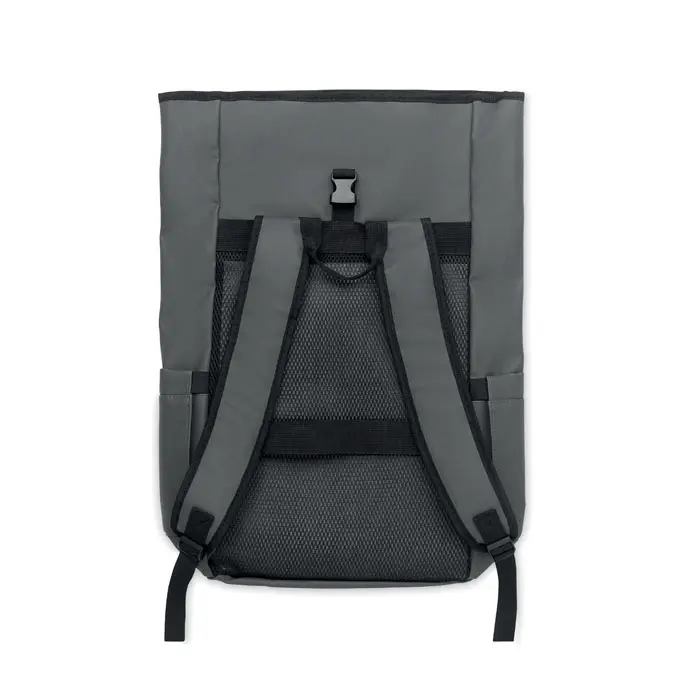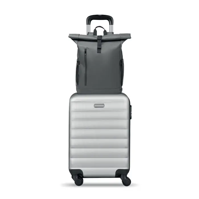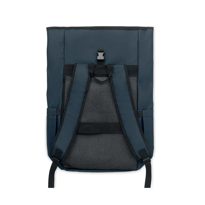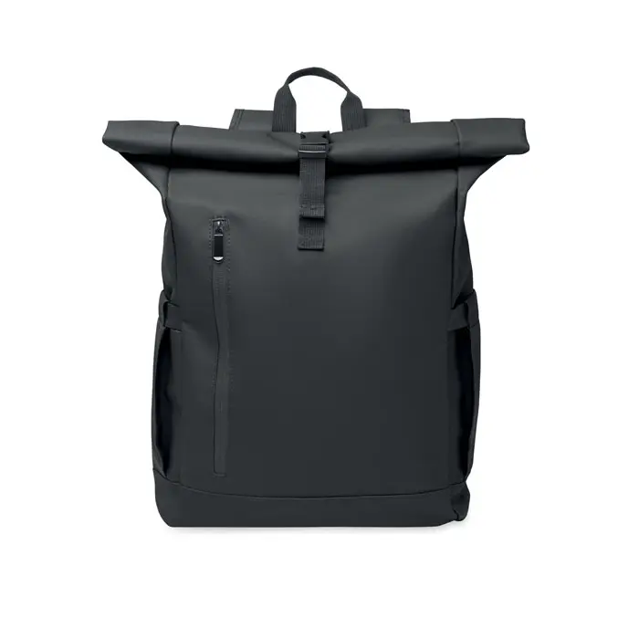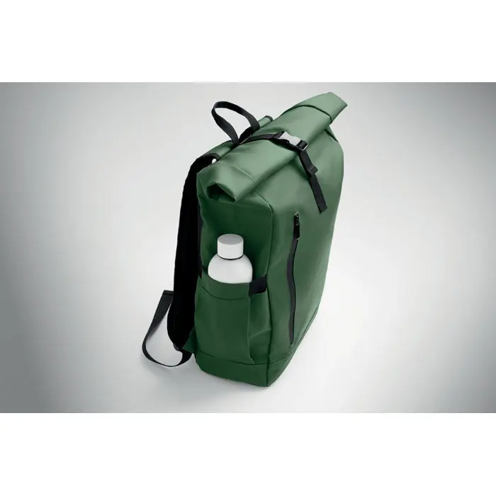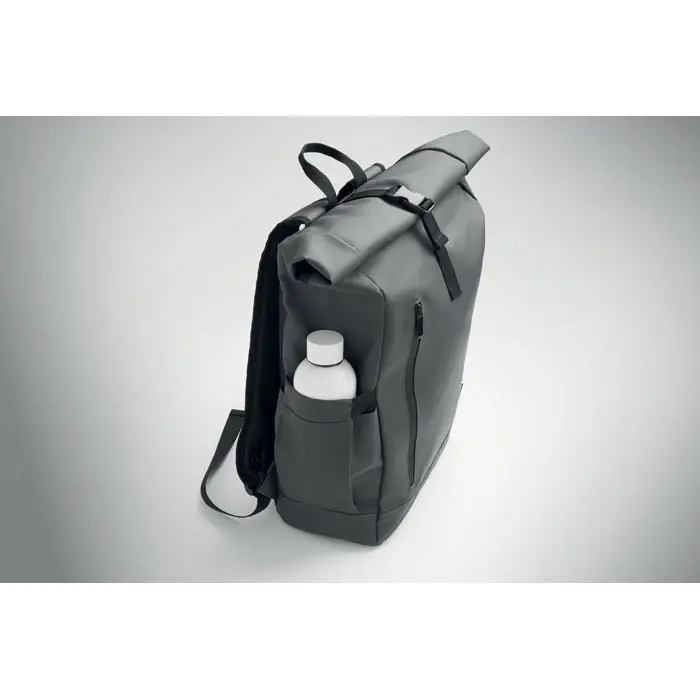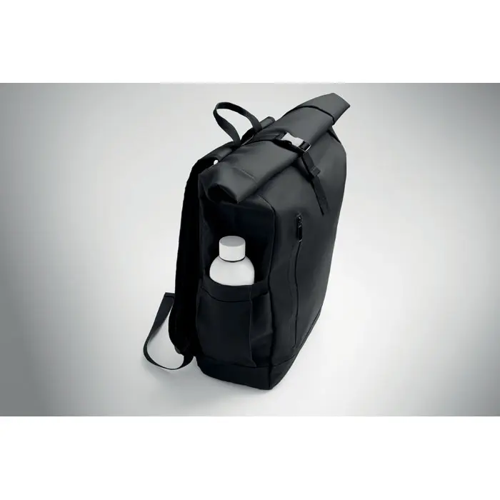 The BANGKOK ROLL rolltop laptop rucksack in 600D material offers a sustainable choice for marketing professionals and event organizers. Crafted from PU-coated recycled polyester (RPET) with an RPET lining, this 15-inch laptop backpack promotes eco-friendly branding while protecting devices securely.