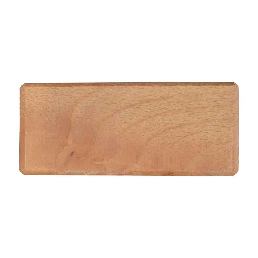 Constructed from premium beech wood with a smooth, polished finish, this holder ensures long-lasting performance in high-traffic environments. Its sturdy rectangular form with rounded corners and central groove securely displays one or more menus on tables or counters. A convenient notch at the base allows effortless menu changes, making it ideal for busy service settings.