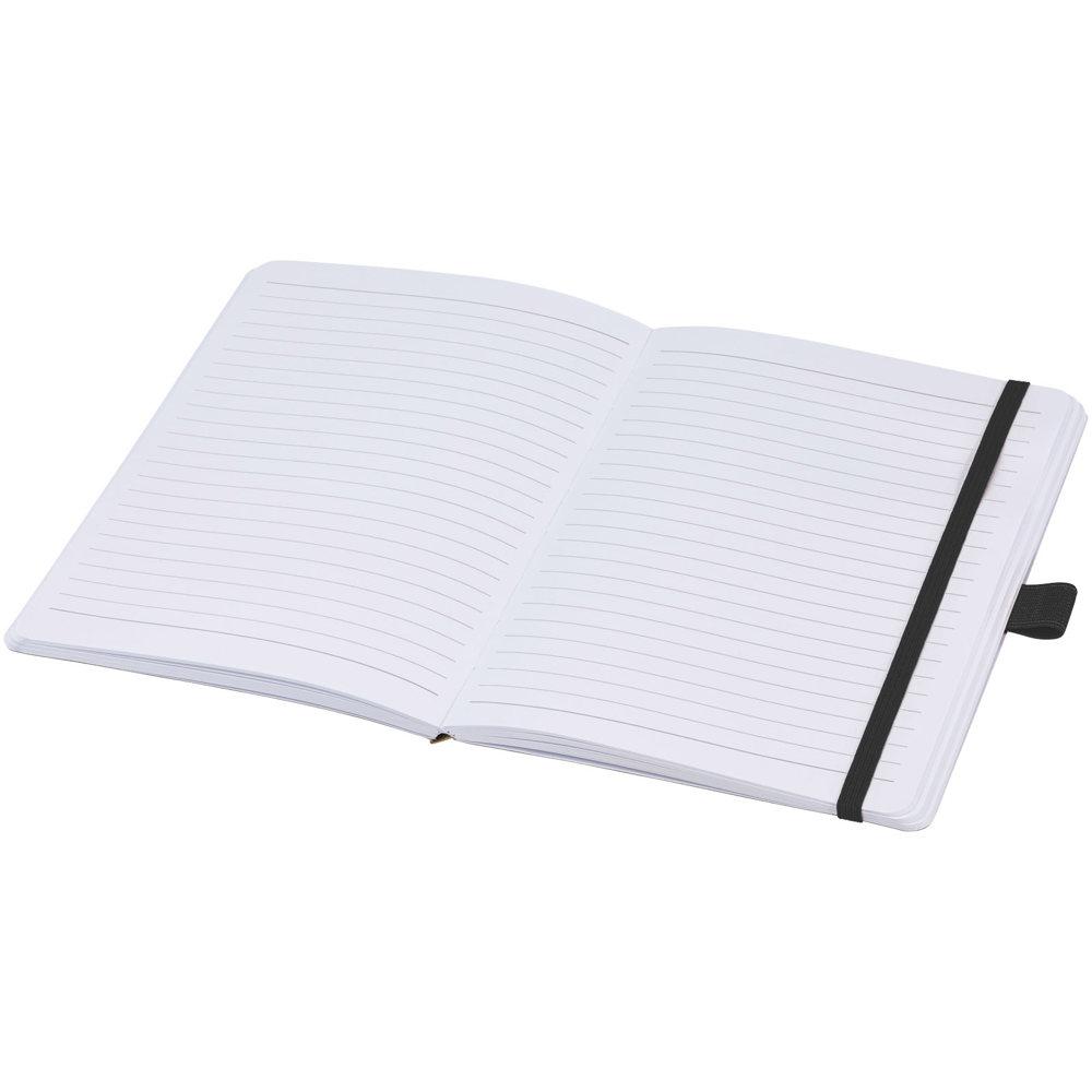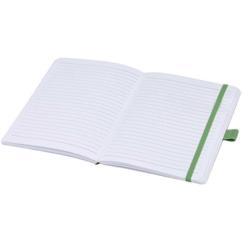 Elevate your promotional giveaways with the Berk recycled paper notebook, made from sustainable 70 g/m² recycled lined paper featuring 80 sheets for ample note-taking space. Its rounded corners enhance durability, while the elastic band keeps contents secure and the integrated pen loop pairs perfectly with compatible pens like the 107384 model.