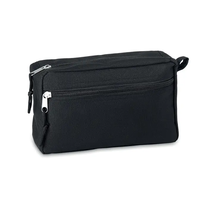Elevate your brand with the BETTER & SMART recycled toiletry bag, crafted from durable 600D RPET-PU material. This sustainable cosmetic bag features a double zipper for secure storage of essentials, making it perfect for travel or daily use.
