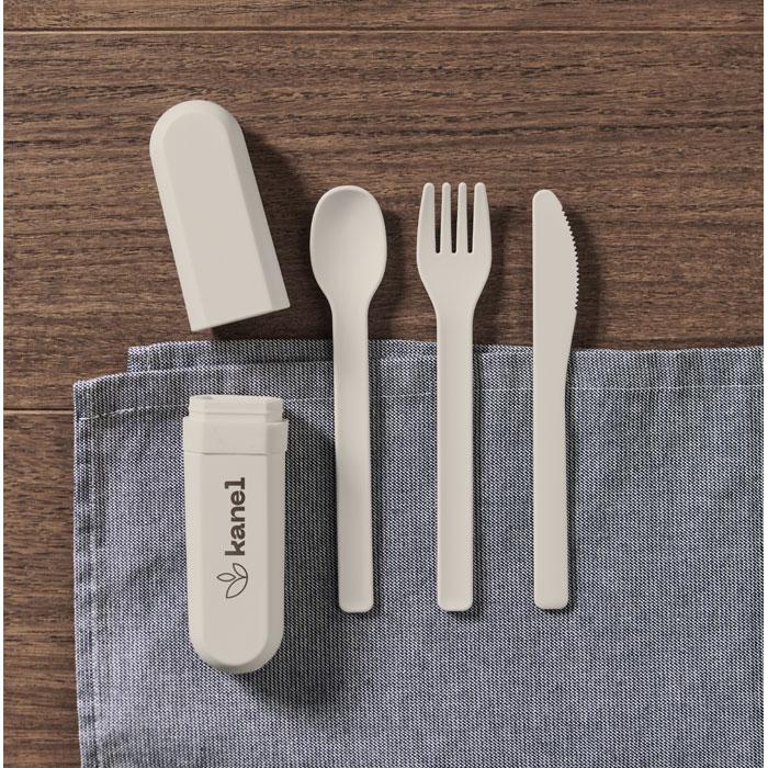 Elevate your brand with the BITEFUL reusable cutlery set and case in PLA, the perfect eco-friendly promotional giveaway for marketing campaigns and events. Crafted from sustainable PLA corn material, this compact set includes a fork, knife, spoon, and a sturdy portable case, ensuring convenience on the go while reducing single-use plastic waste.