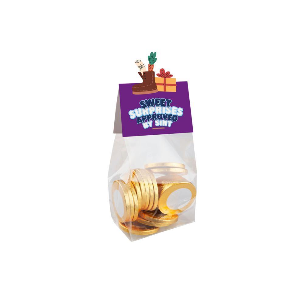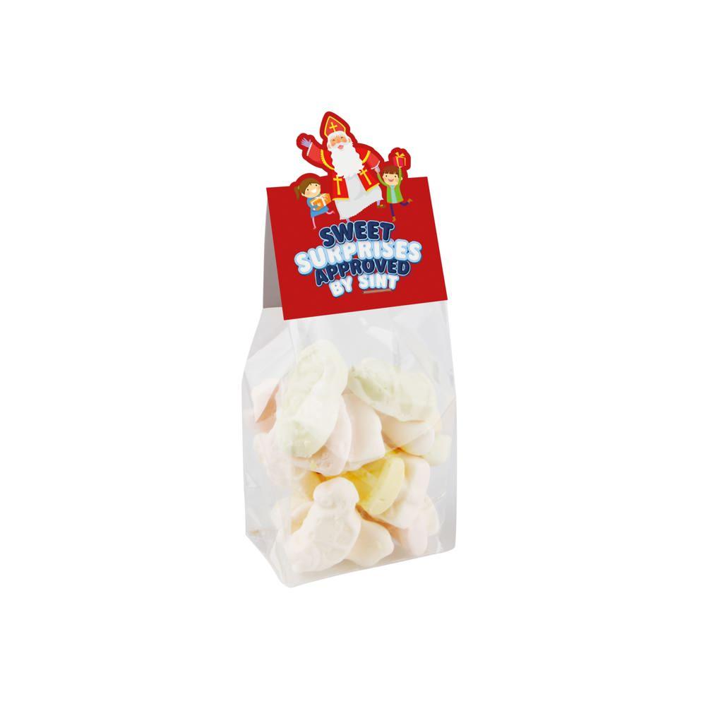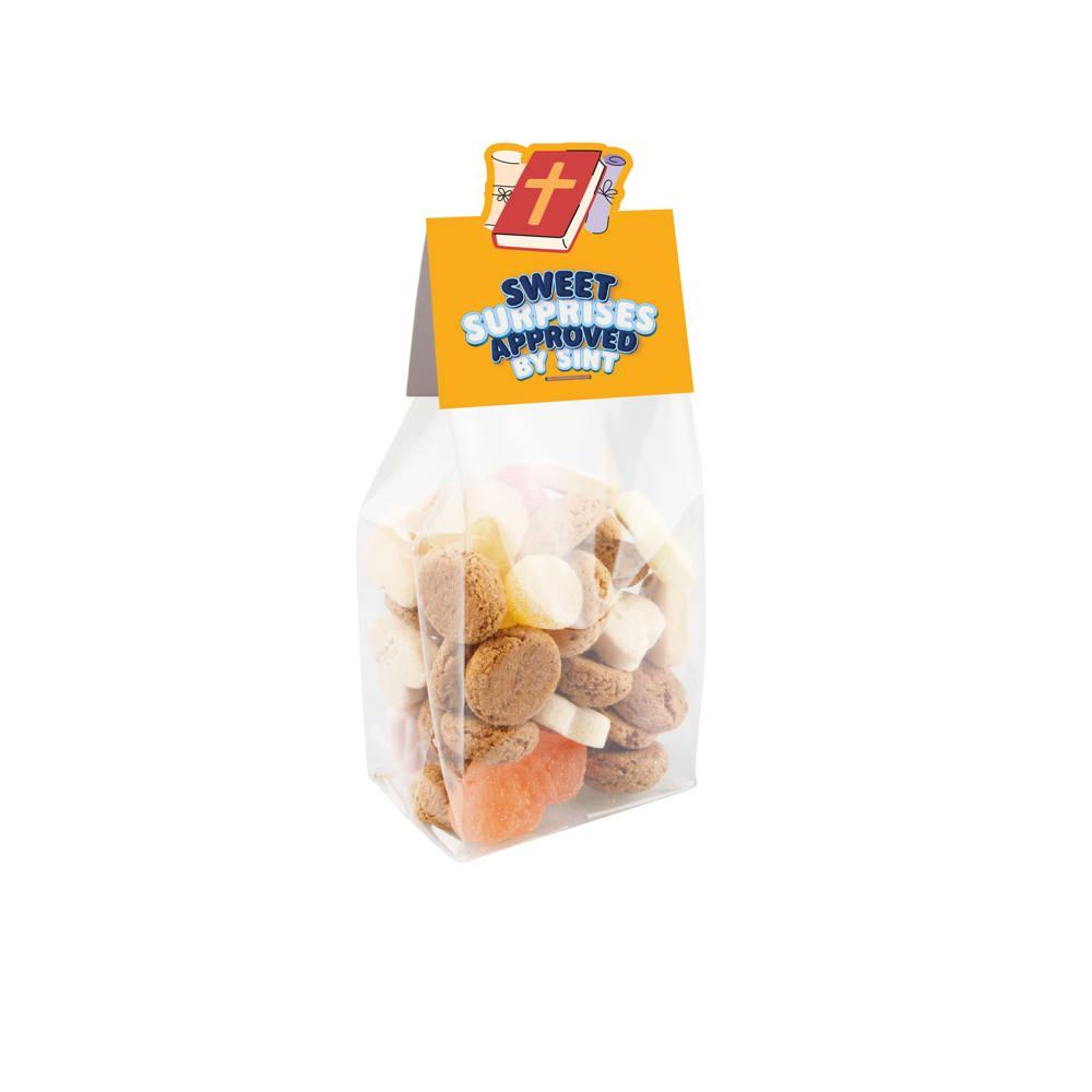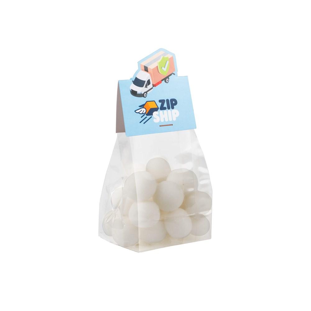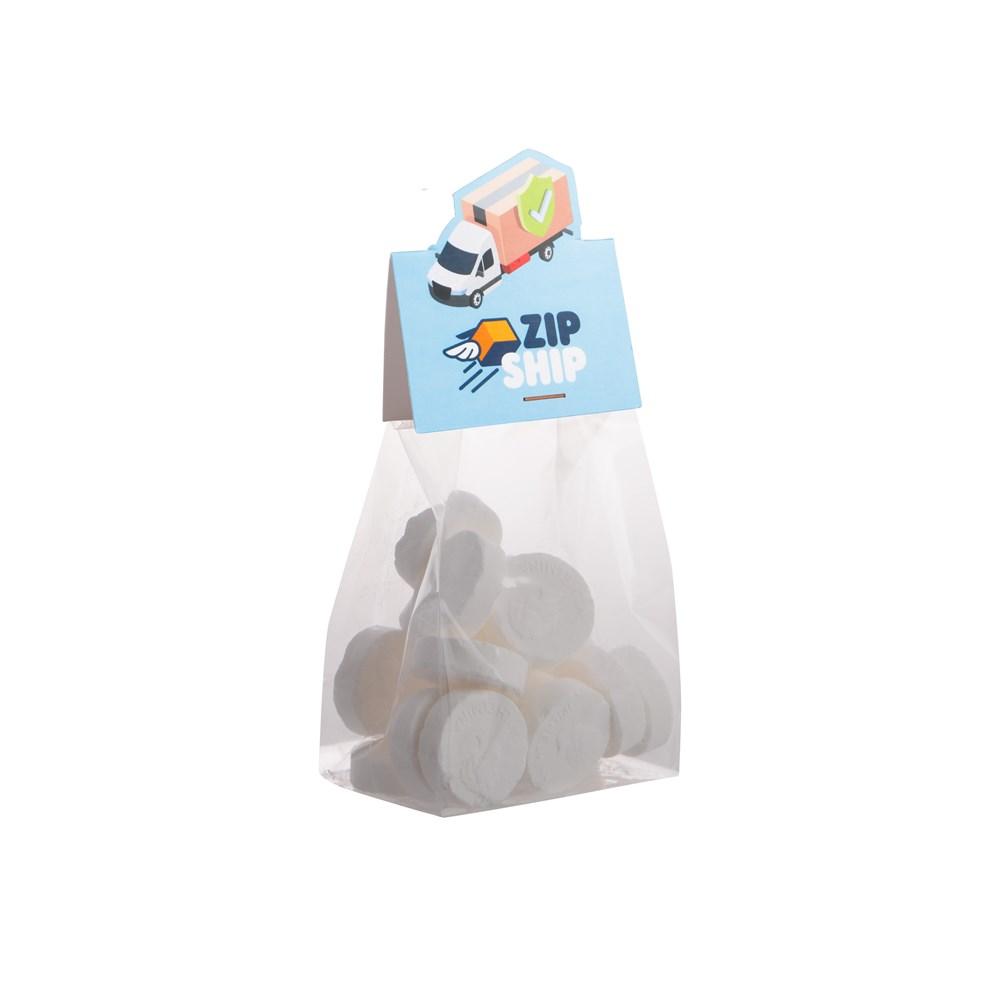 Impress your clients and boost brand visibility with our customizable block bag, featuring a full-color printed header card in your own unique shape. Filled with 100 grams of premium licorice sticks mix, this eye-catching giveaway combines delicious indulgence with standout personalization.