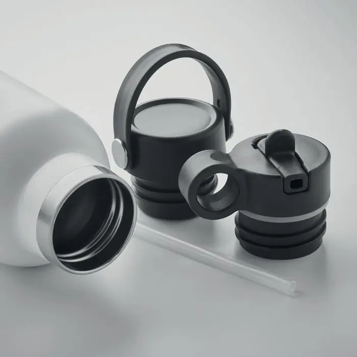 Featuring a 700 ml capacity, this bottle includes a non-leak screw cap for secure transport and an interchangeable built-in straw cap for convenient sipping. The double wall construction prevents condensation and ensures durability, ideal for everyday use or promotional events.