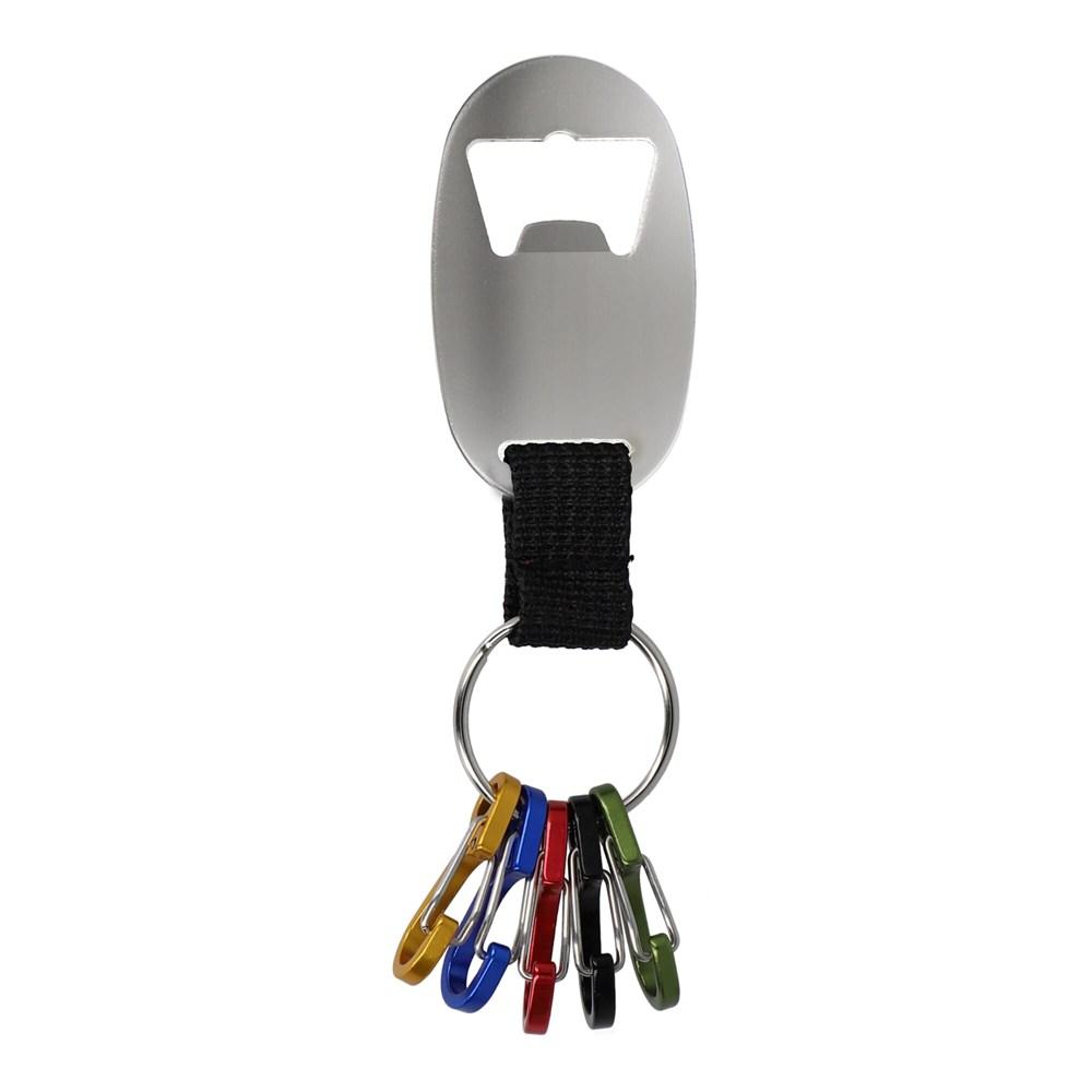 Elevate your promotional giveaways with this custom bottle opener keychain crafted from recycled aluminum. Featuring five sturdy carabiner-style hooks, it keeps keys neatly organized and accessible for everyday convenience.