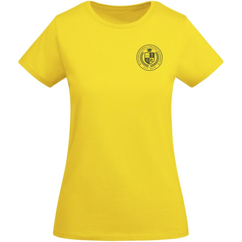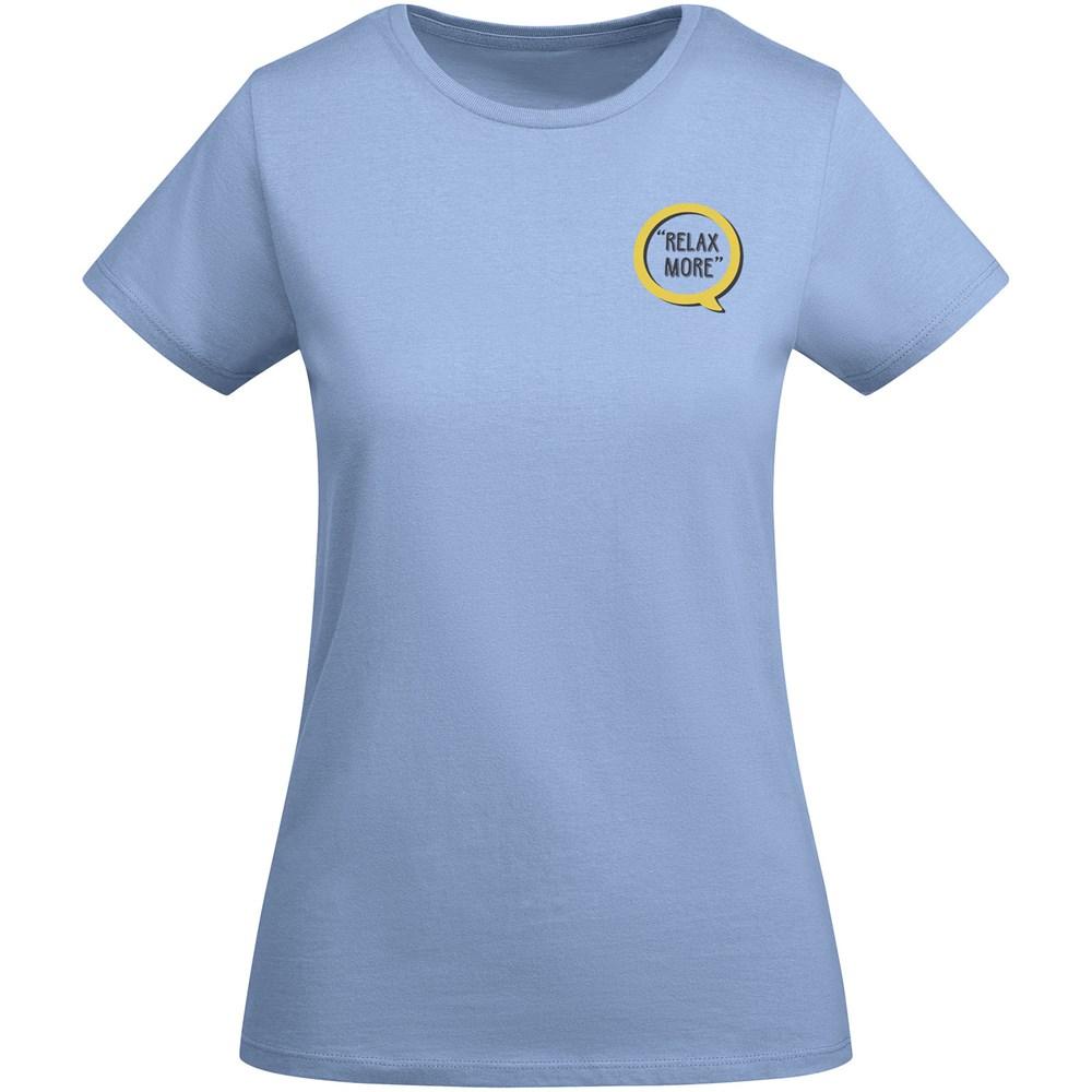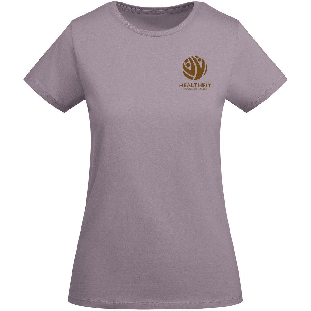 Elevate your brand with the Breda organic cotton short-sleeve women's t-shirt, a fitted essential perfect for custom logo printing and promotional giveaways. Crafted from premium organic cotton, it offers superior softness, breathability, and sustainability, making it an eco-friendly choice that aligns with modern corporate values.