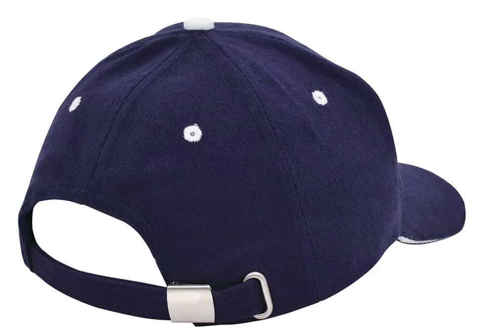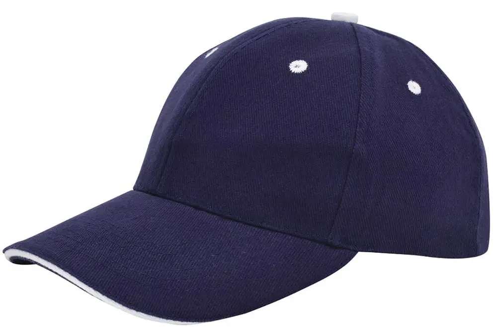 Elevate your brand with our Brushed Sandwich Cap, a bestseller among promotional baseball caps. This stylish six-panel design features a unique sandwiched peak, offering a subtle contrast that highlights your embroidered or printed logo perfectly. Crafted from soft, brushed 100% cotton for all-day comfort, it includes an adjustable silver buckle for a secure fit.