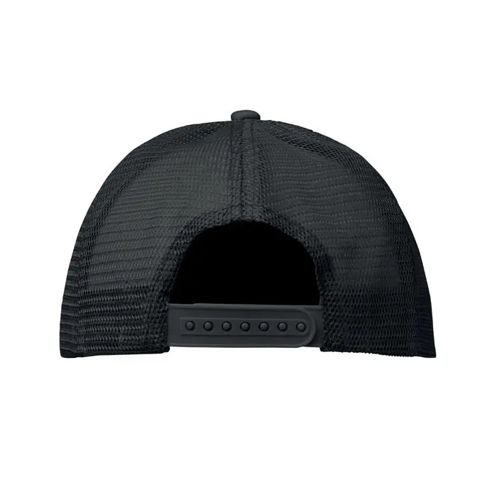 Elevate your promotional efforts with this versatile 5-panel truckers cap, designed for comfort and style in everyday use. Made from durable polyester fabric weighing 140-150 gr/m², it features an adjustable plastic snap closure for a secure, customizable fit suitable for various head sizes around 7 1/4.