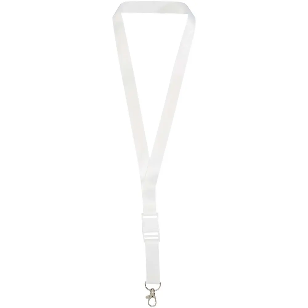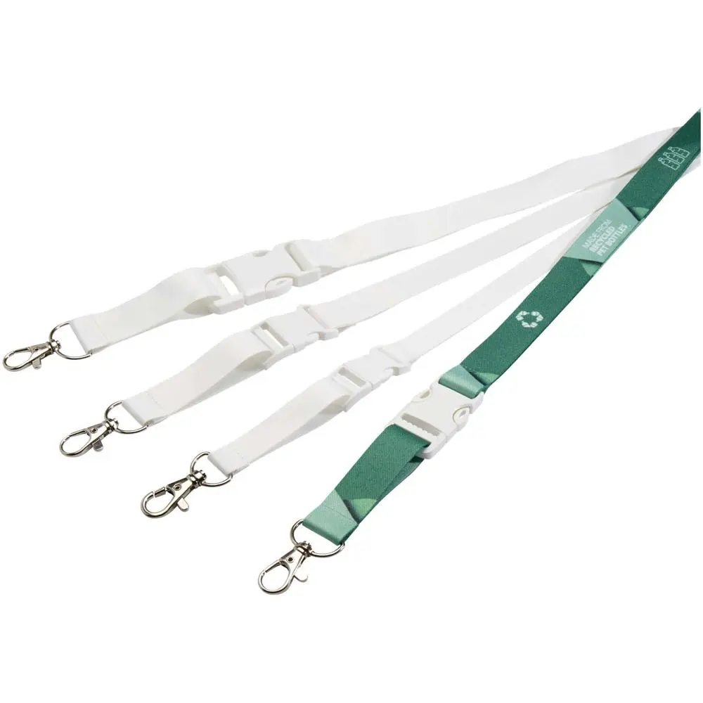 Elevate your brand's sustainability efforts with the Bucks recycled PET lanyard featuring a safety buckle. Crafted from eco-friendly recycled PET polyester, this versatile accessory measures 94.5 cm in length and comes in widths of 10, 15, 20, or 25 mm to suit any style. Customize with full-color sublimation printing on one or both sides—choose standard or fitted alignment for seamless double-sided designs that showcase your logo vividly.