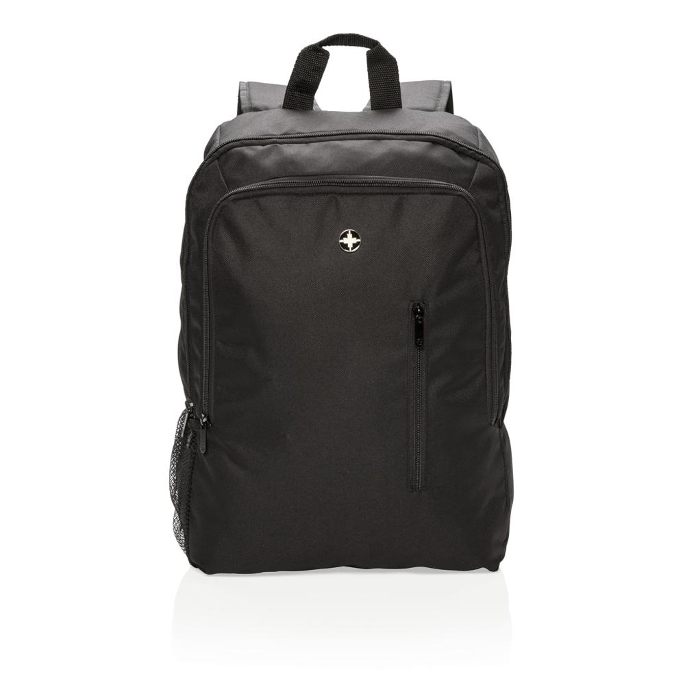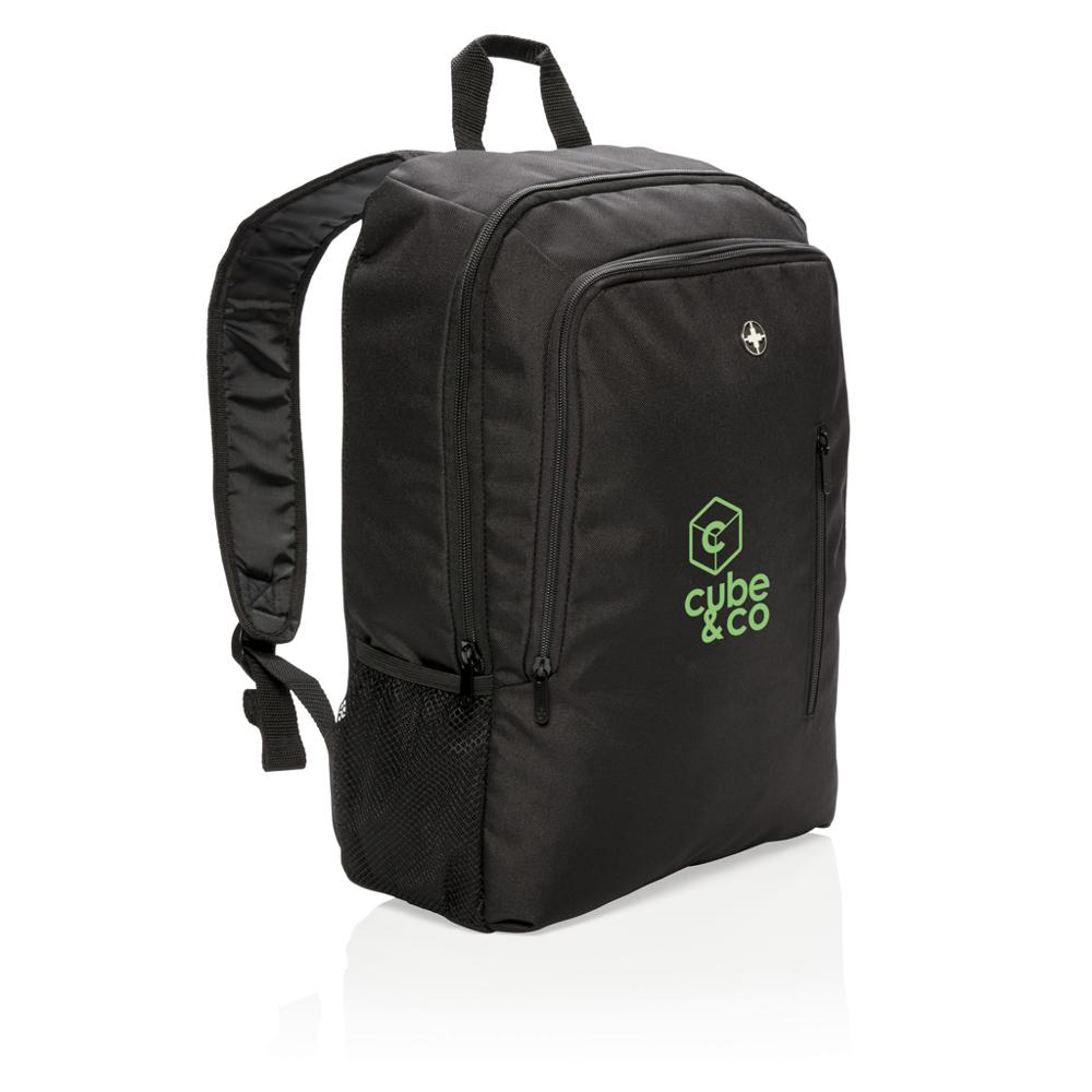 Elevate your brand with this sleek, minimalist 17-inch business laptop backpack, ideal for corporate giveaways and events. Crafted from durable 600D and 1680D polyester, it features a spacious main compartment that securely fits laptops up to 17 inches, plus a second organized compartment for accessories and essentials. The side mesh pocket keeps water bottles handy, while the streamlined design ensures a professional look.