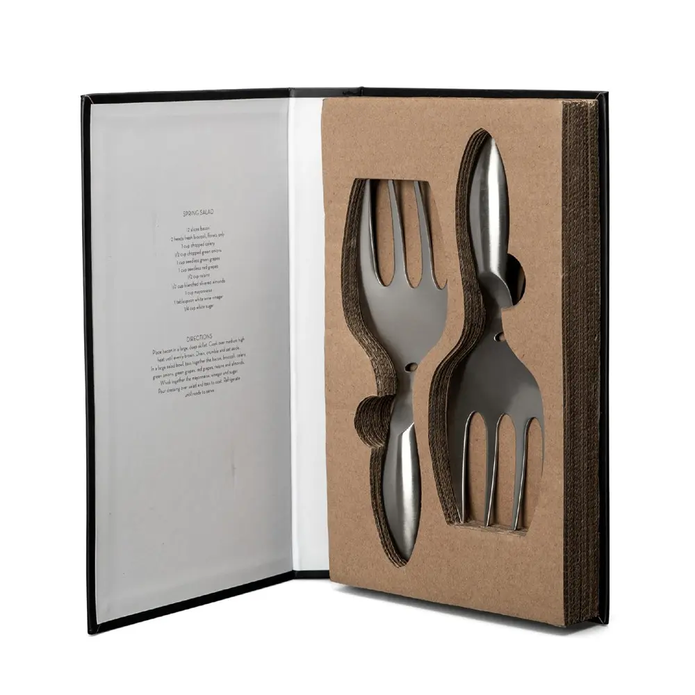 Elevate your corporate gifting with the Byon Insalata salad server set, crafted from durable stainless steel for lasting elegance. This stylish duo of salad servers arrives in a charming book-shaped gift box titled "Kitchen Stories," perfect for adding a touch of sophistication to any presentation.