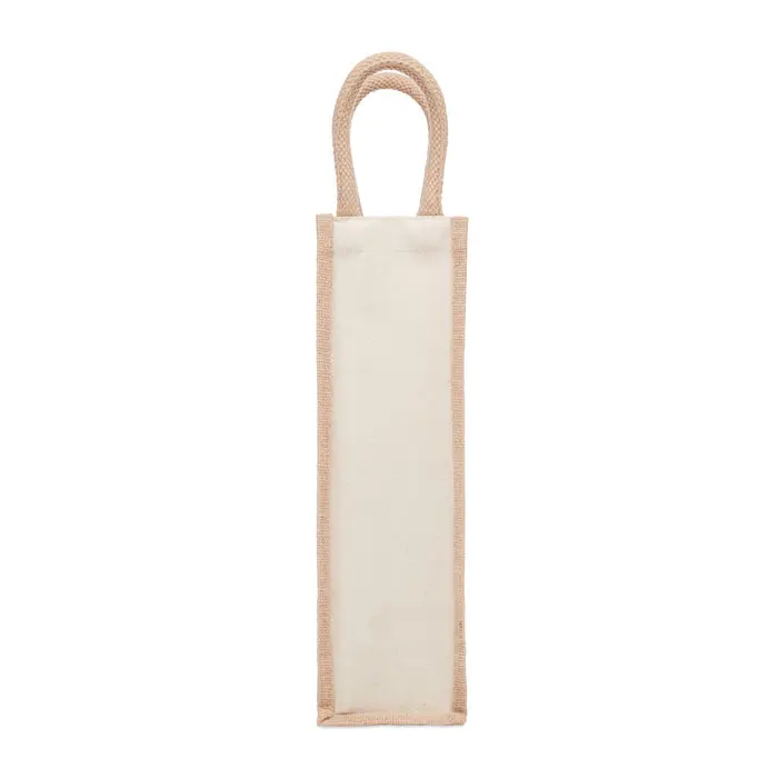 Elevate your promotional gifts with this sustainable jute wine bag designed for a single bottle. Crafted from natural jute and reinforced with 320 gr/m² canvas, it offers durability and an eco-conscious appeal perfect for marketing campaigns and corporate events.