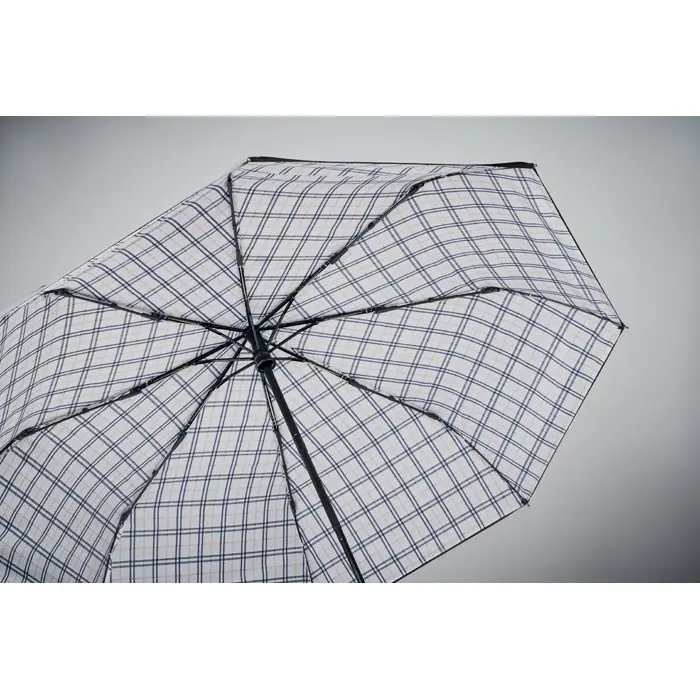 This 23-inch three-fold umbrella offers automatic open and close functionality, making it a convenient choice for on-the-go use during events or daily commutes. Crafted with a double-layer 190T pongee canopy featuring a subtle chequered inner pattern, it provides enhanced durability and protection against rain and wind.