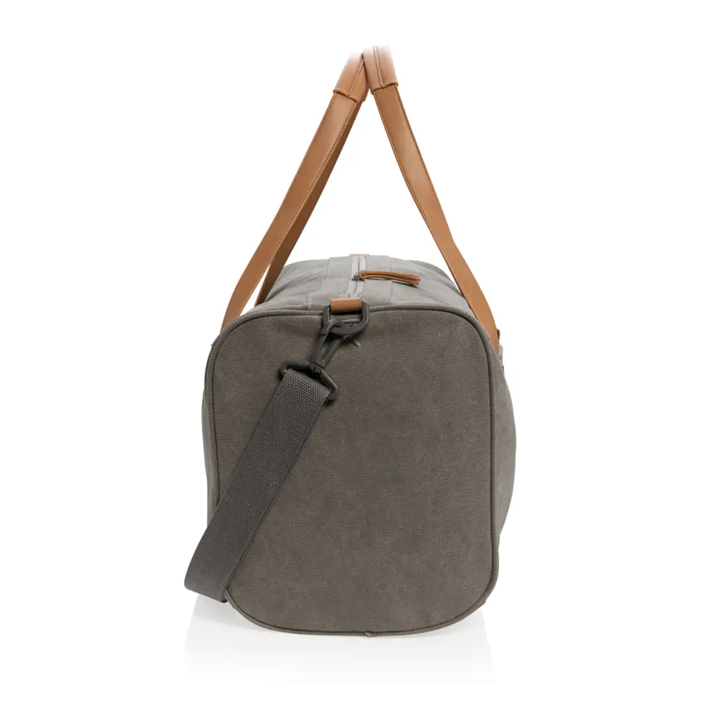 Elevate your brand's visibility with this versatile canvas travel or weekend bag, perfect for promotional giveaways at events or client appreciation gifts. Crafted from durable, natural canvas with polyurethane accents, it offers a spacious 27L capacity to carry essentials stylishly and comfortably. The removable, adjustable shoulder strap ensures easy portability for on-the-go professionals.