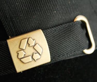Elevate your brand with this eco-friendly six-panel cap made from 100% recycled PET (rPET). Featuring a reinforced front panel for durability and an adjustable brass buckle closure with a prominent recycle logo, it offers a comfortable, one-size-fits-most fit.
