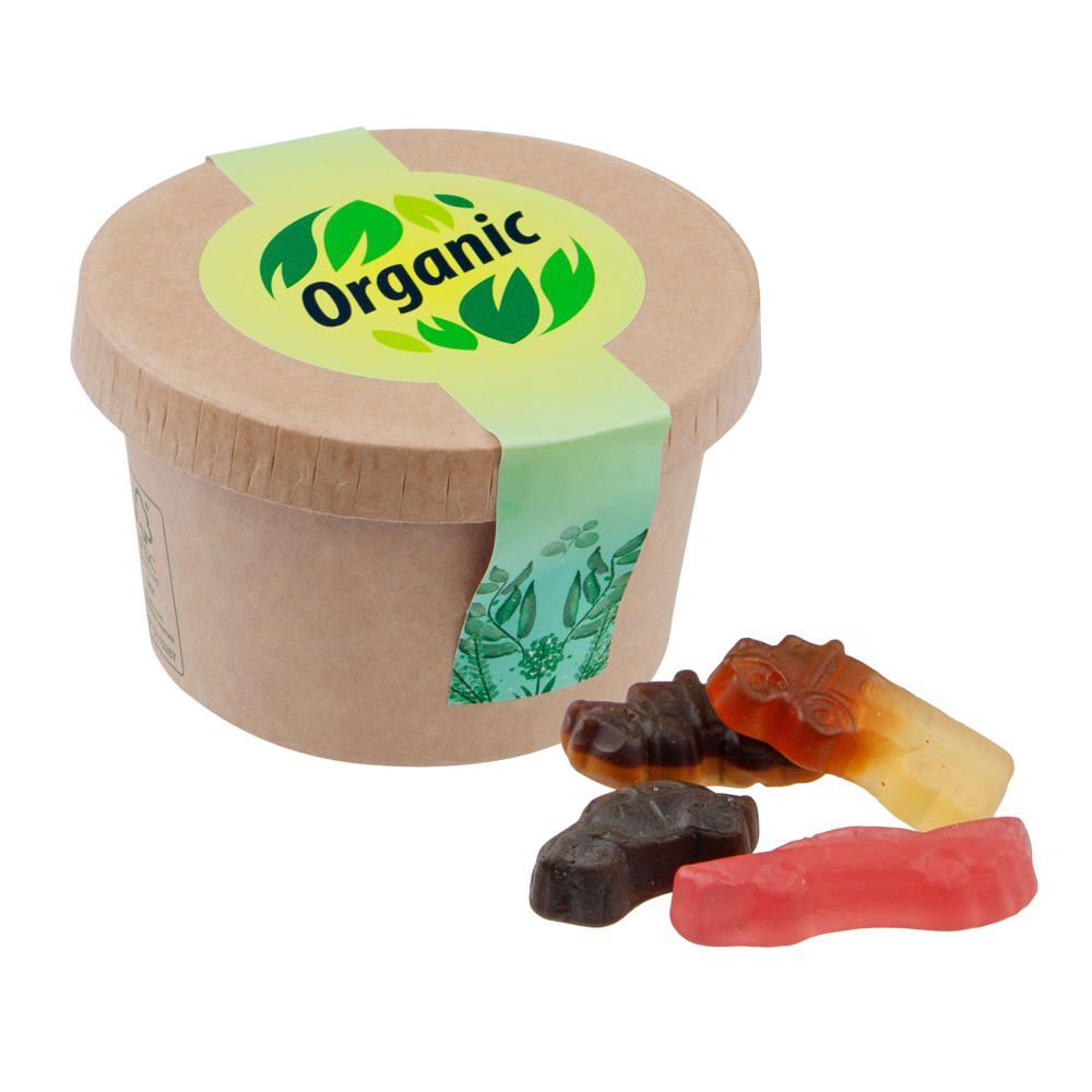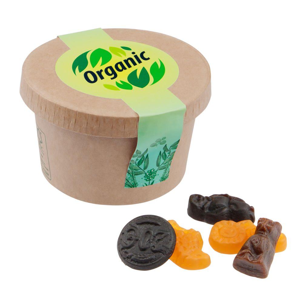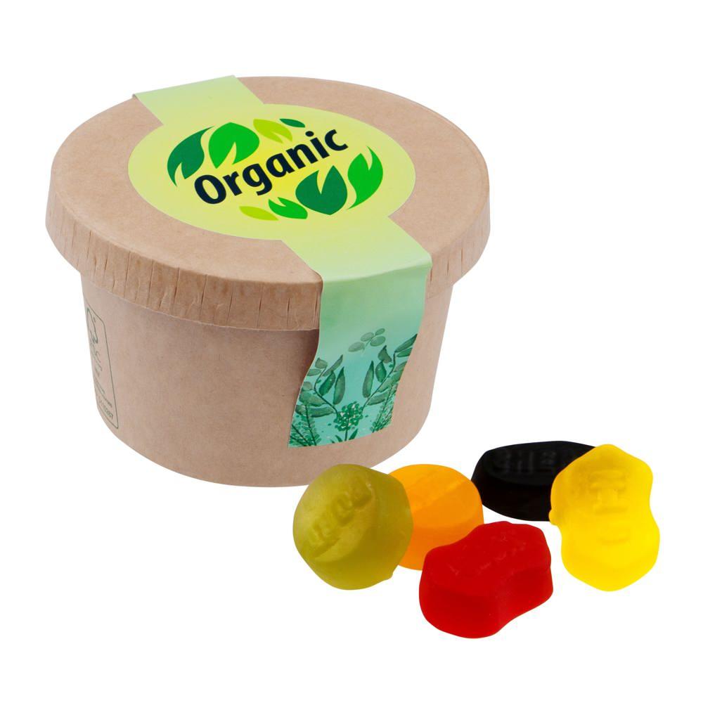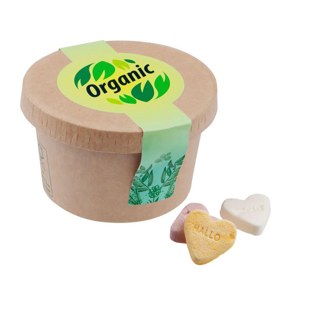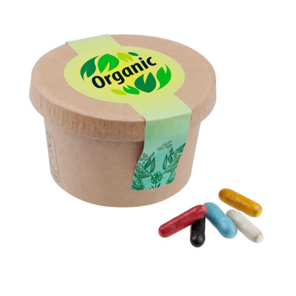 Cardboard Cup with Candy – the perfect personalized promotional giveaway for marketing professionals and event organizers. Crafted from eco-friendly unbleached cardboard, this sturdy cup holds approximately 130 grams of delightful Compli'mints, sealed with a full-color sticker ideal for your custom logo or branding.
