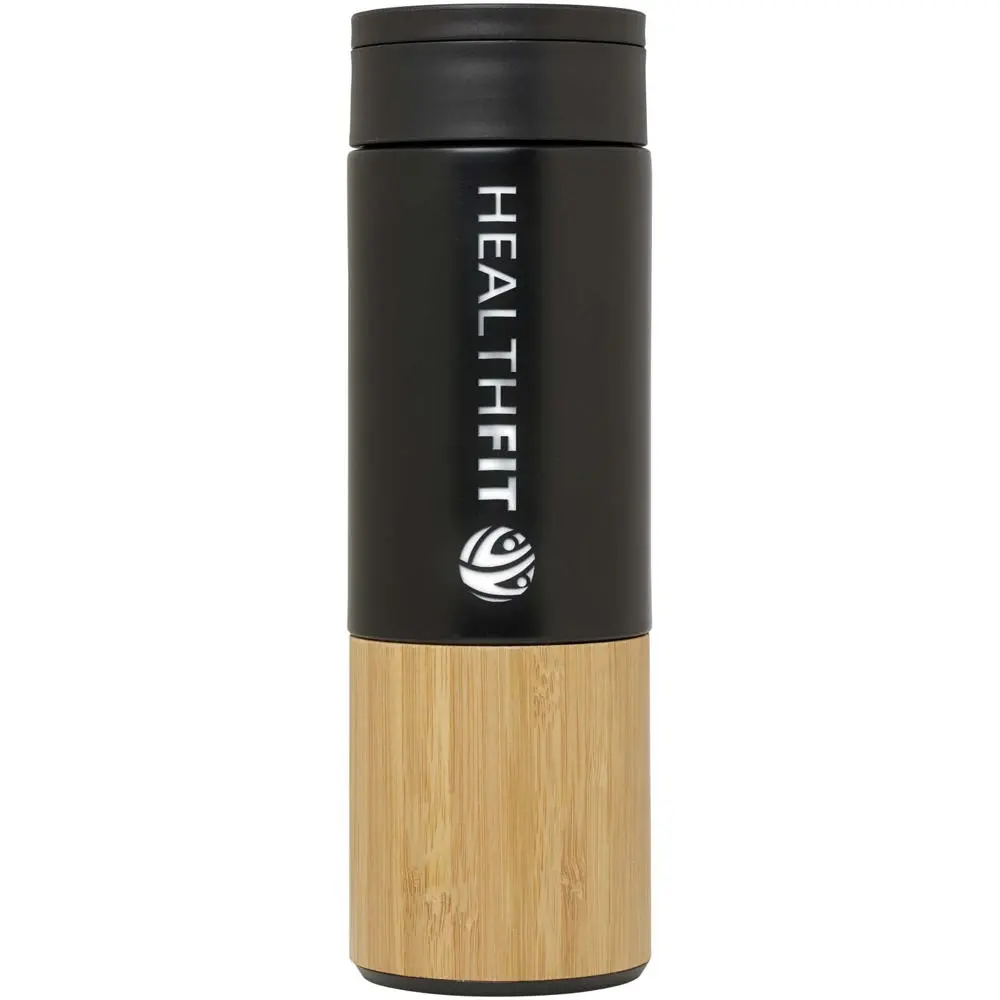 At 450 ml capacity (6.6 x 22.2 cm), this durable bottle features a bamboo accessory for an eco-touch. Hand wash recommended to maintain quality. Hydration on the go promotes wellness, and with logo branding, it becomes a mobile advertisement at conferences, tradeshows, or office environments.