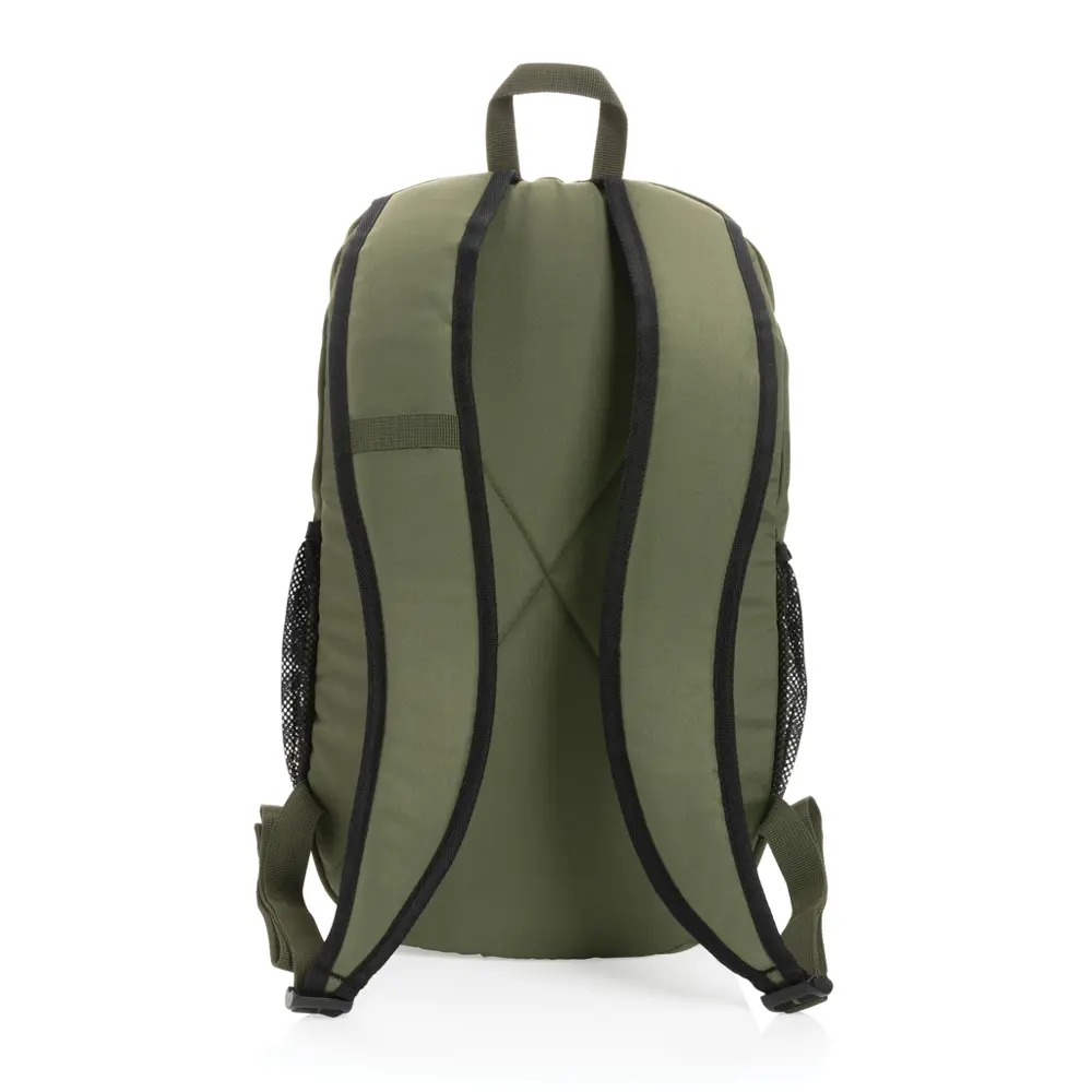 Elevate your brand's eco-conscious image with the Impact AWARE™ 300D RPET casual backpack, perfect for personalization with your logo. Crafted from 100% recycled 300D polyester exterior and 100% recycled 150D polyester lining, this sustainable 14L backpack reuses 15.39 half-liter PET bottles and features AWARE™ traceability to verify genuine recycled materials. PVC-free and compliant with strict eco-standards like REACH and AZO dyes, it supports your green initiatives while donating 2% of proceeds to Water.org.