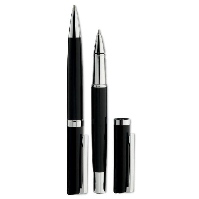 This sophisticated duo includes a smooth twist ball pen and a precise roller pen, designed for reliable performance in professional settings.